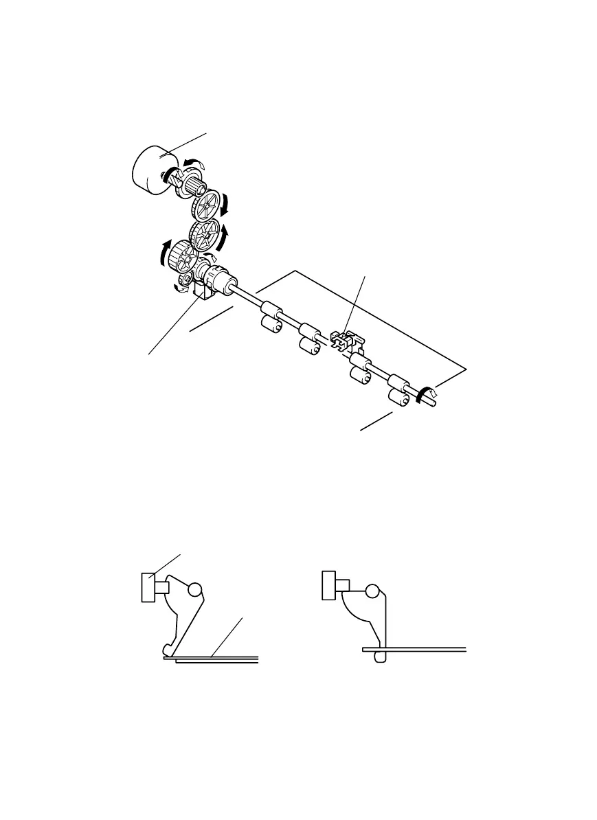 • Drive for paper take-up from the Manual Bypass is transmitted from a motor via the Sole-
