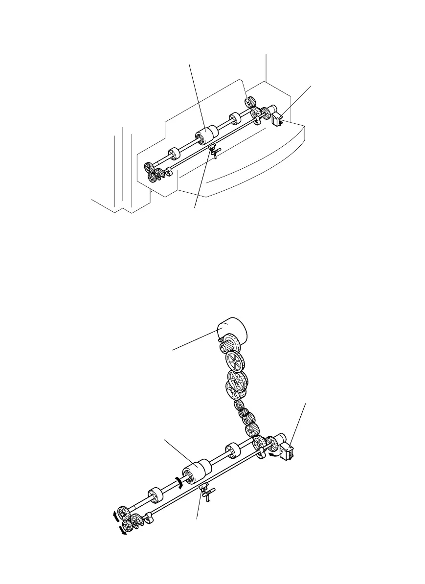 • Drive for paper take-up from the Multiple Bypass is transmitted from a motor via the Sole-