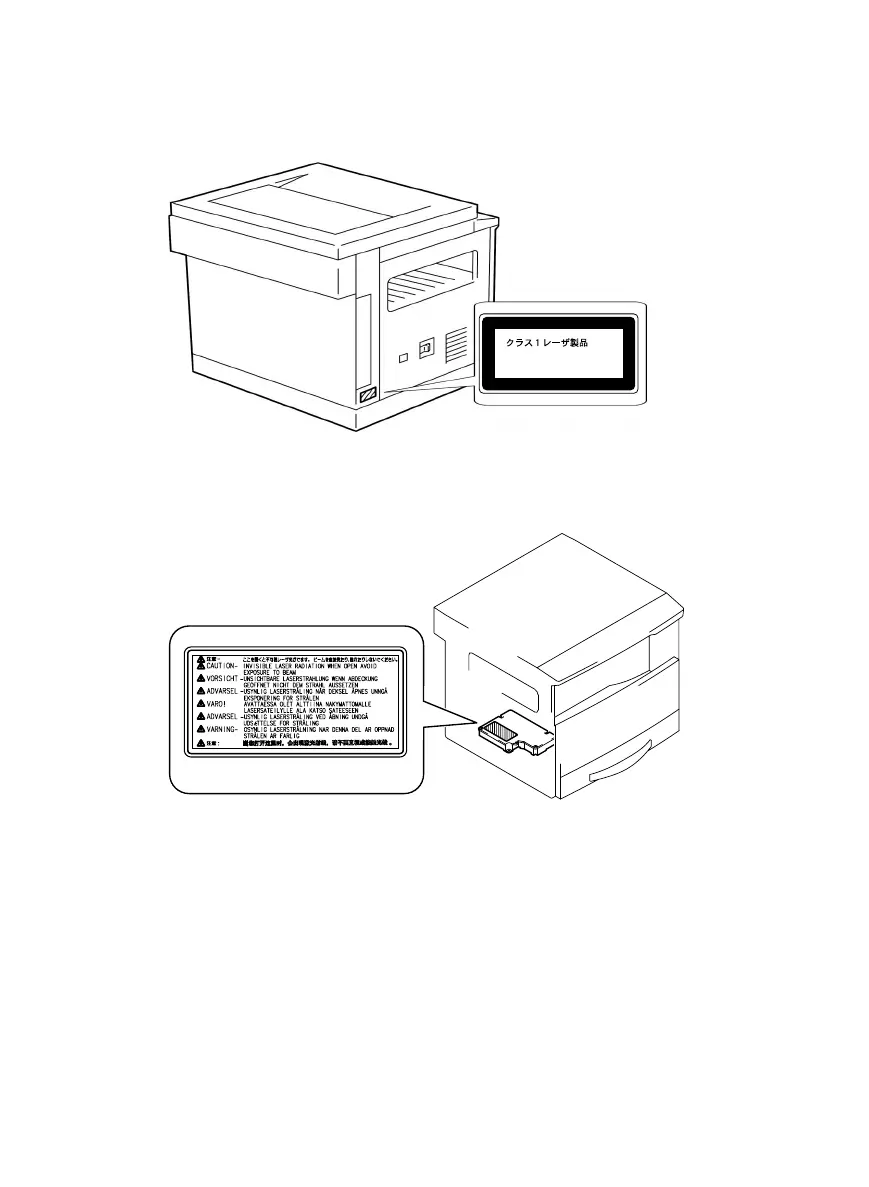 • A laser safety labels is attached to the outside of the machine as shown below.