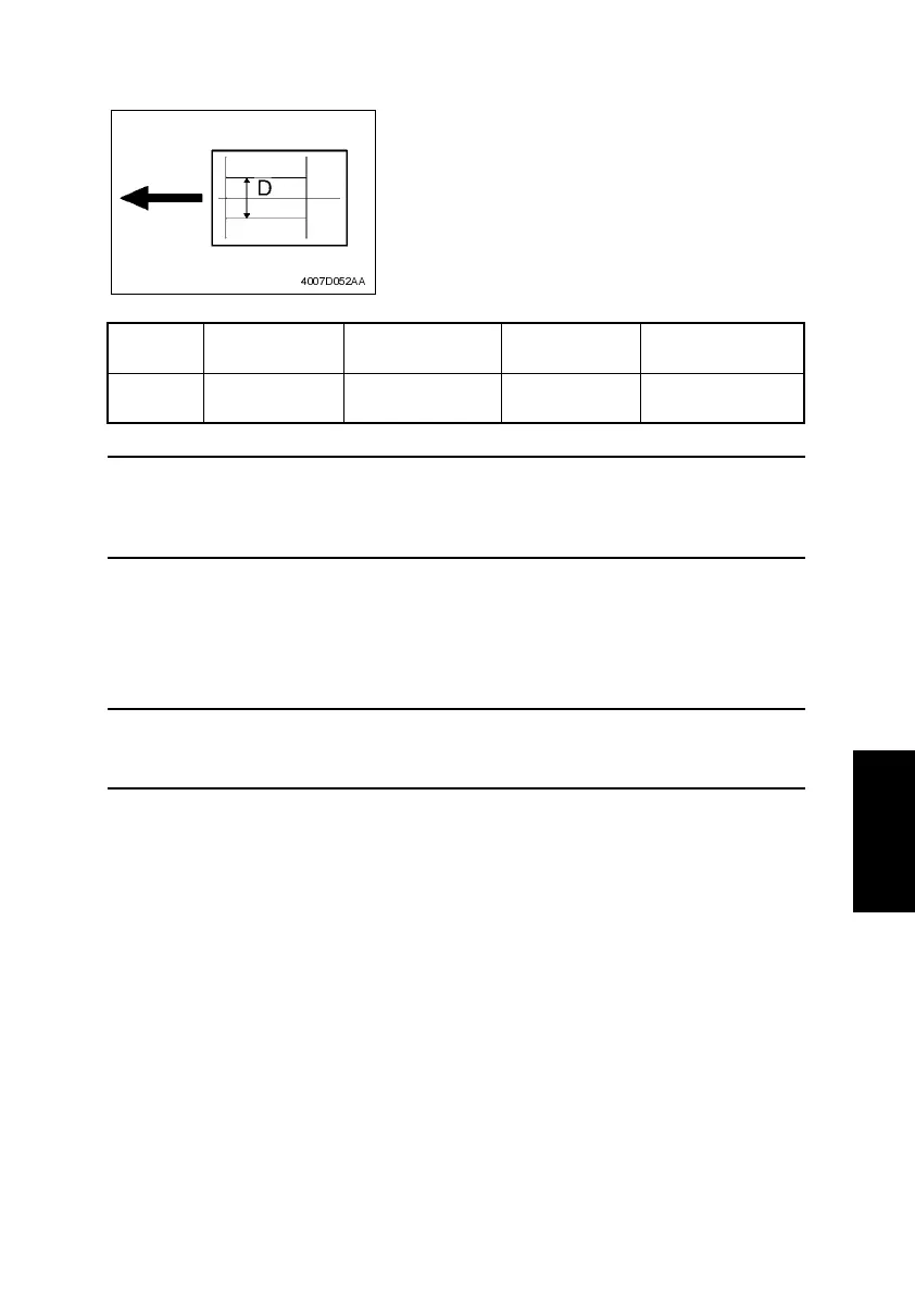 4. Check that the width of D in the copy of the test pattern meets the specification.