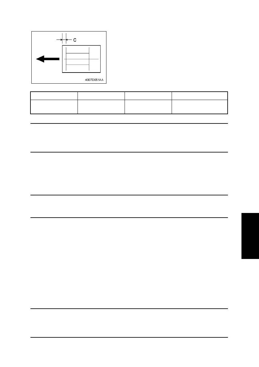 4. Check that the width of C in copy of the test pattern meets the specification.