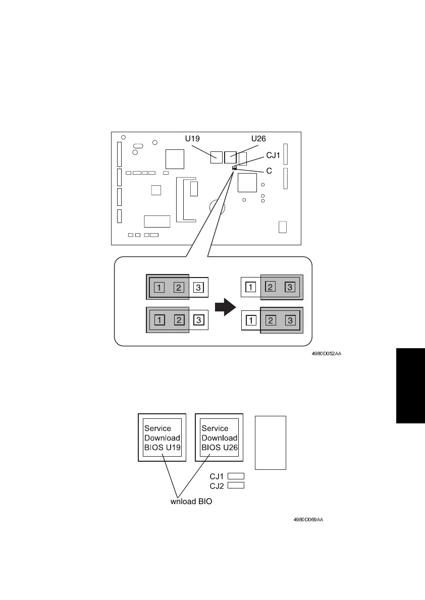 5. Attach Service Download BIOS U19 and U26 to memory sockets U19 and U26 on the