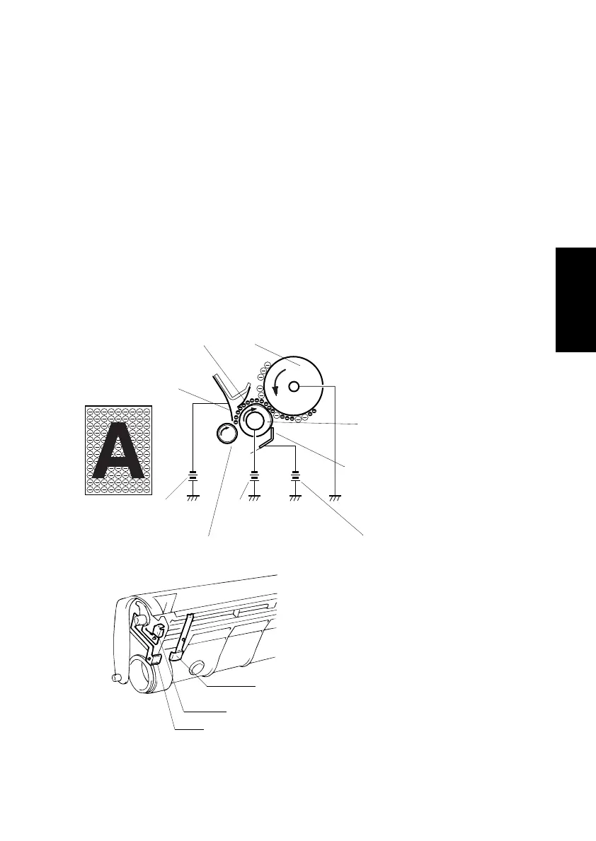 • The toner sticks to the area on the surface of the PC Drum that has been exposed to the