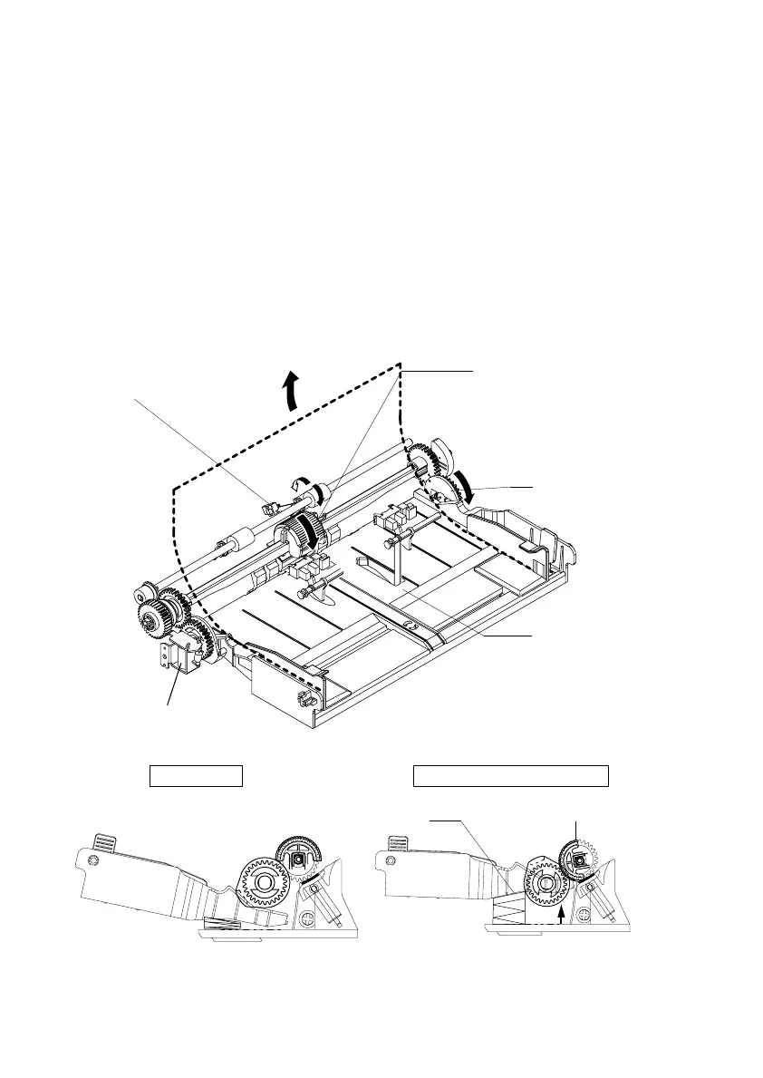• At the same time, the Depressing Cam turns so as to raise the Paper Lifting Plate. Then,