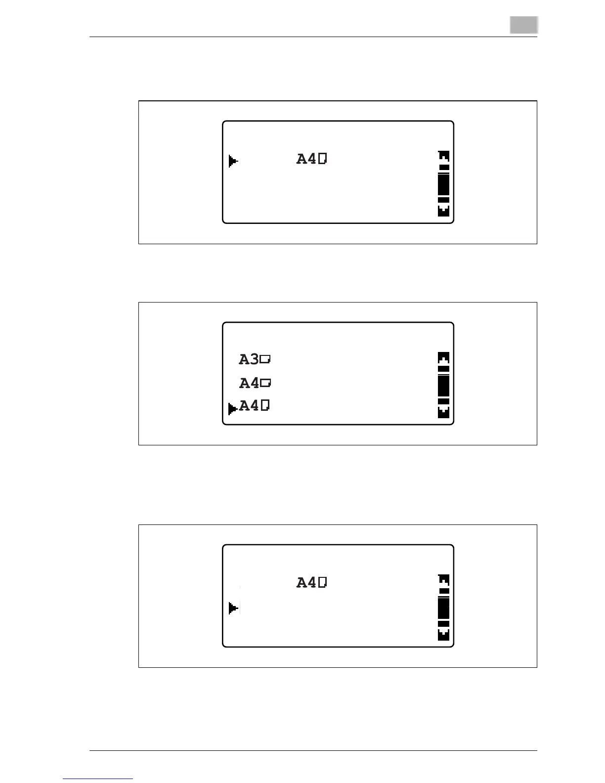 5 Press the [+] or [,] key until the appropriate paper size is selected, and