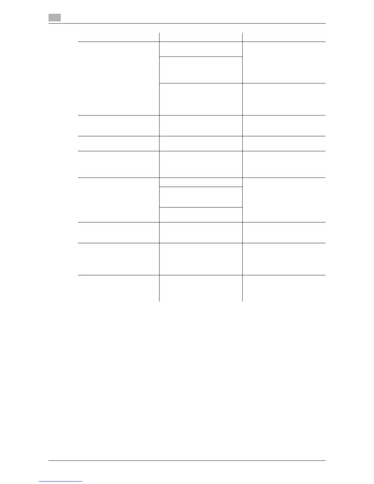 Troubleshooting table