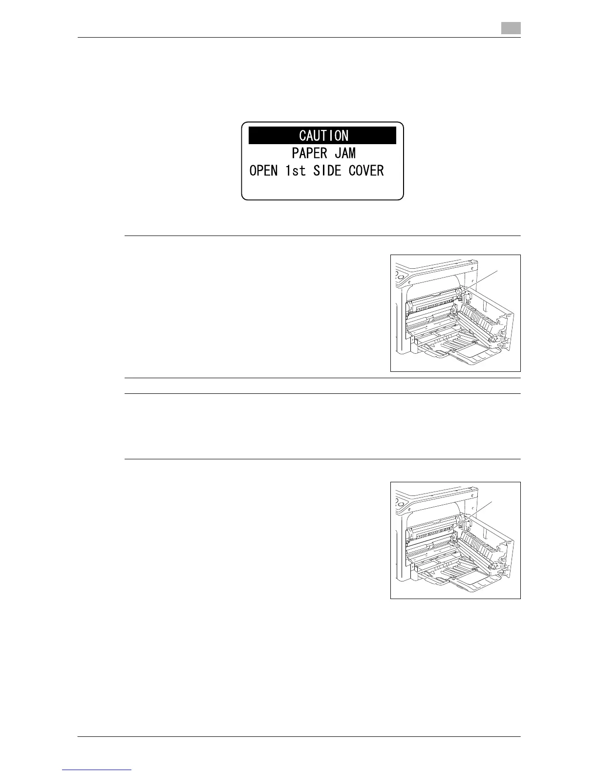 If a paper jam occurs, the message [PAPER JAM OPEN 1st SIDE COVER] appears.