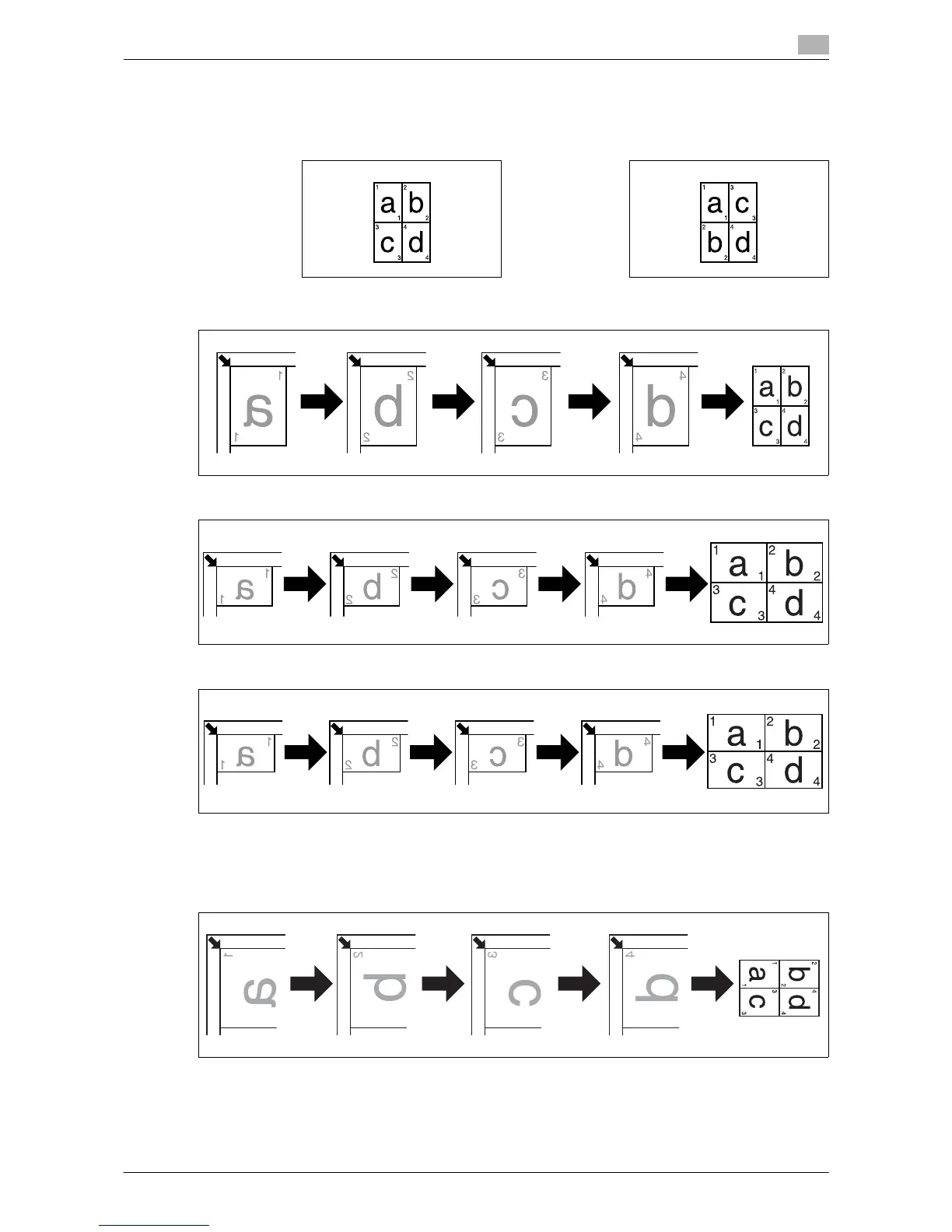 % Press the Menu/Select key ö [COPY FUNCTION] ö [COMBINE ORIGINAL] ö [4in1].