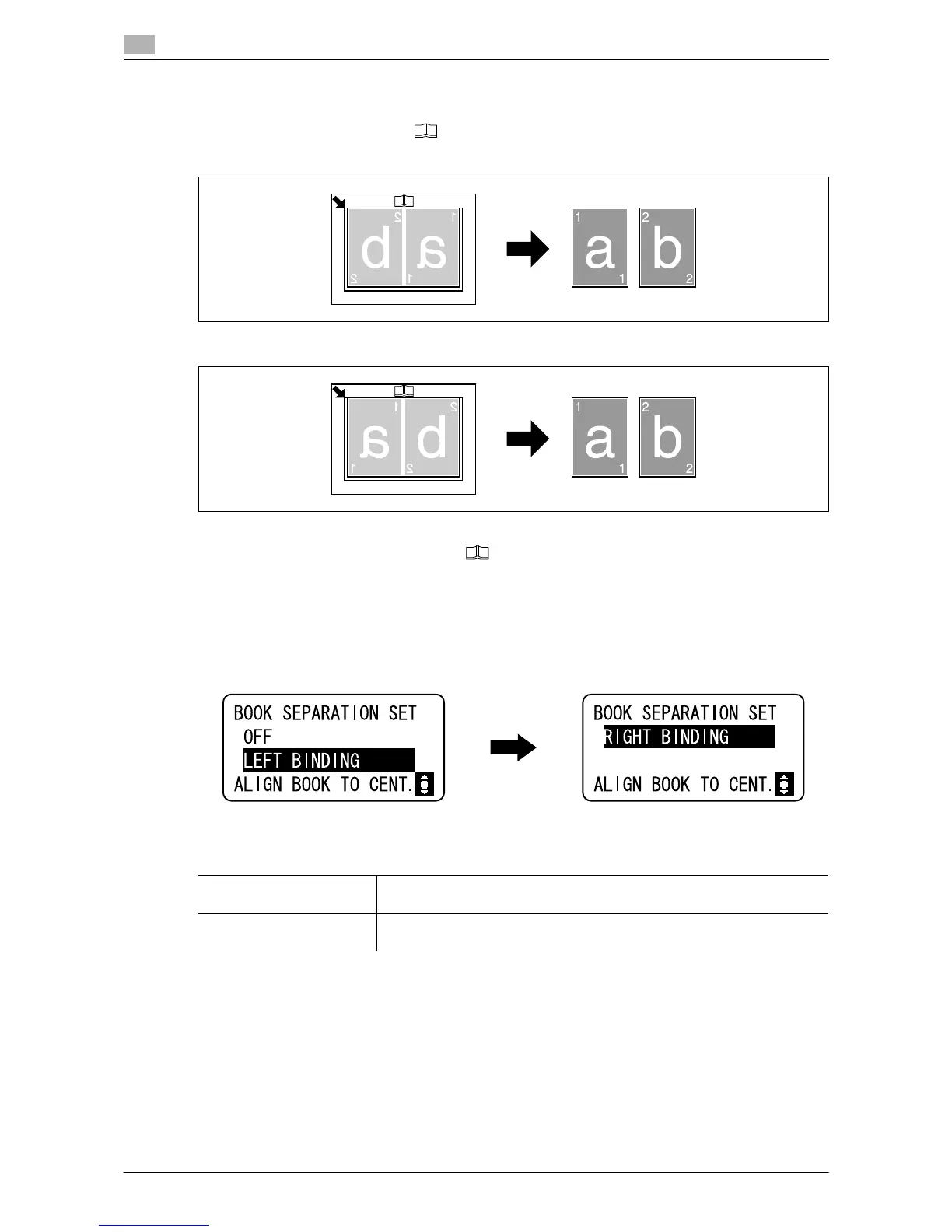 % Press the Menu/Select key ö [COPY FUNCTION] ö [BOOK SEPARATION].