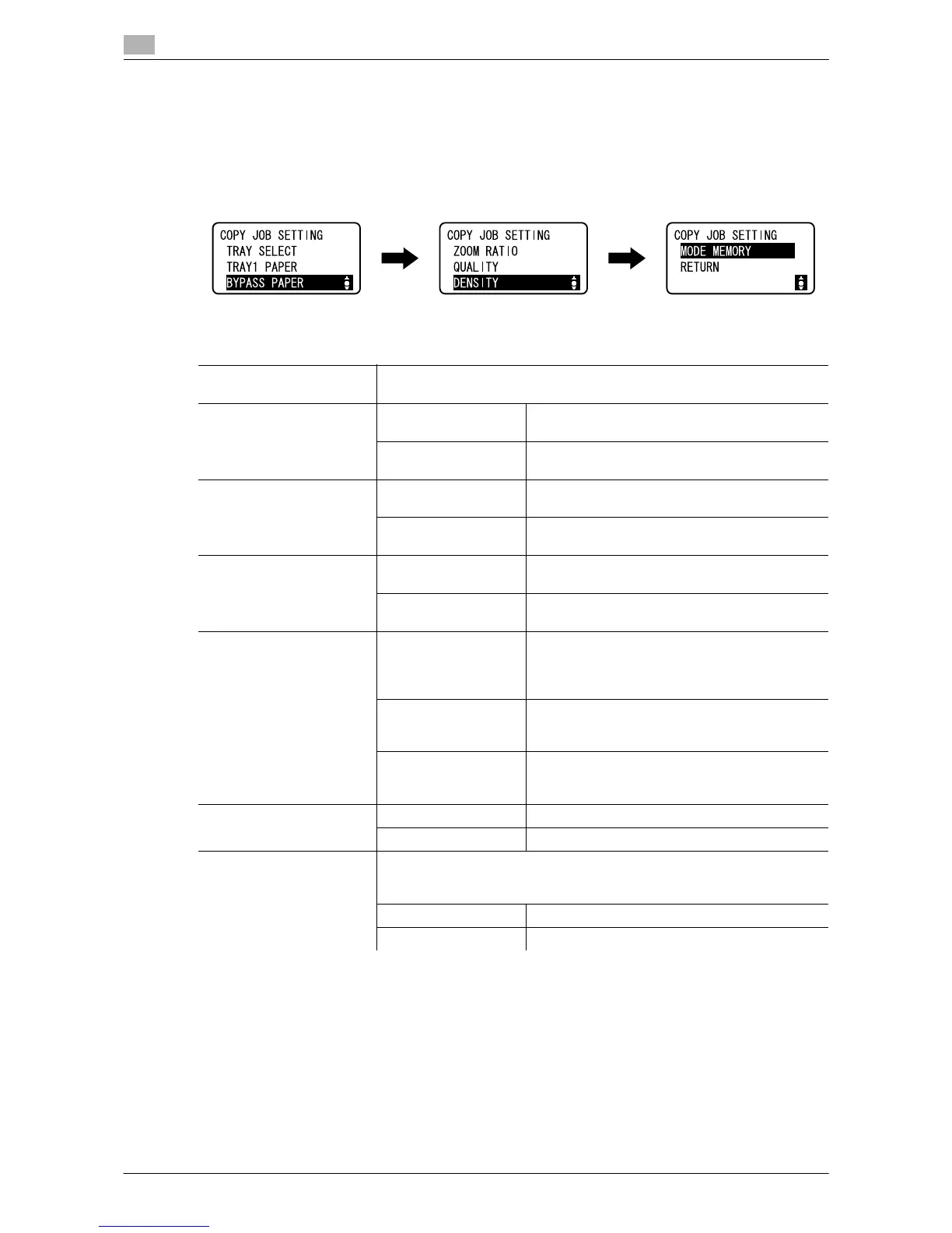 % Press the Menu/Select key ö [COPY JOB SETTING].