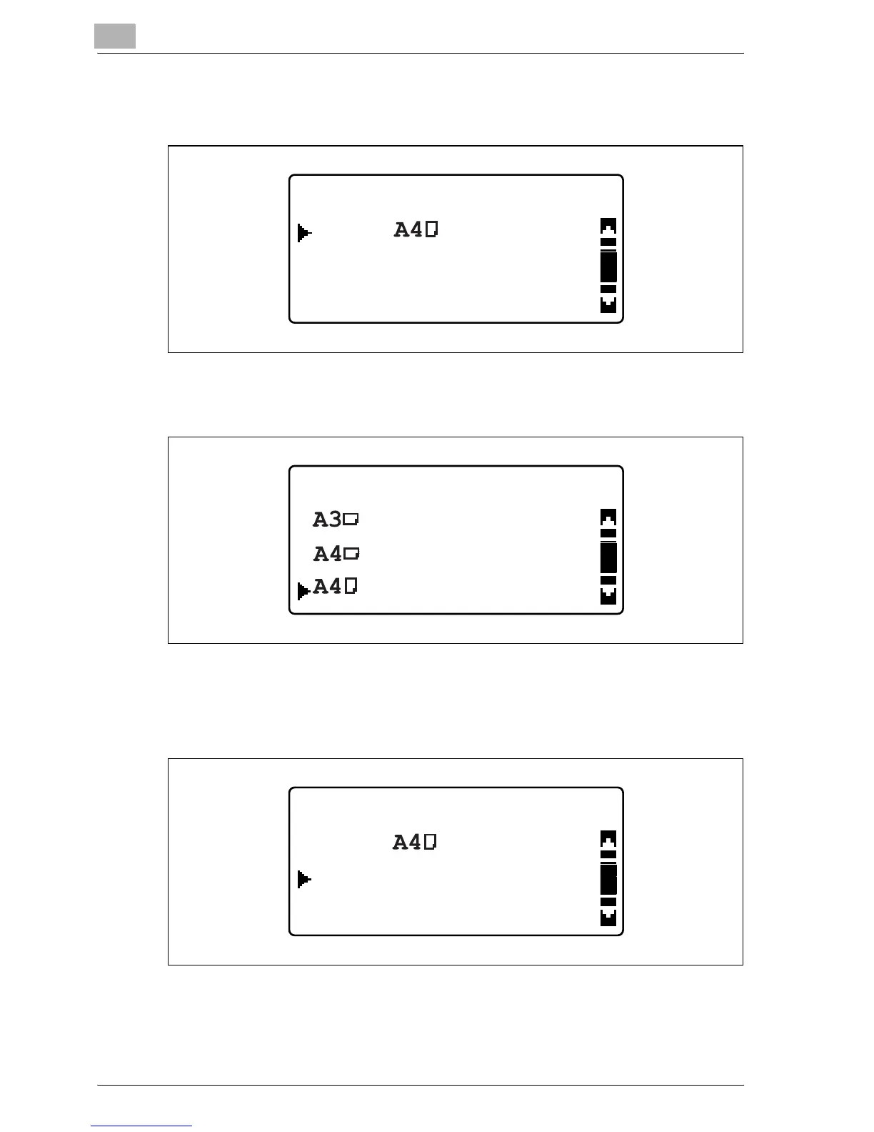 5 Press the [+] or [,] key until the appropriate paper size is selected, and