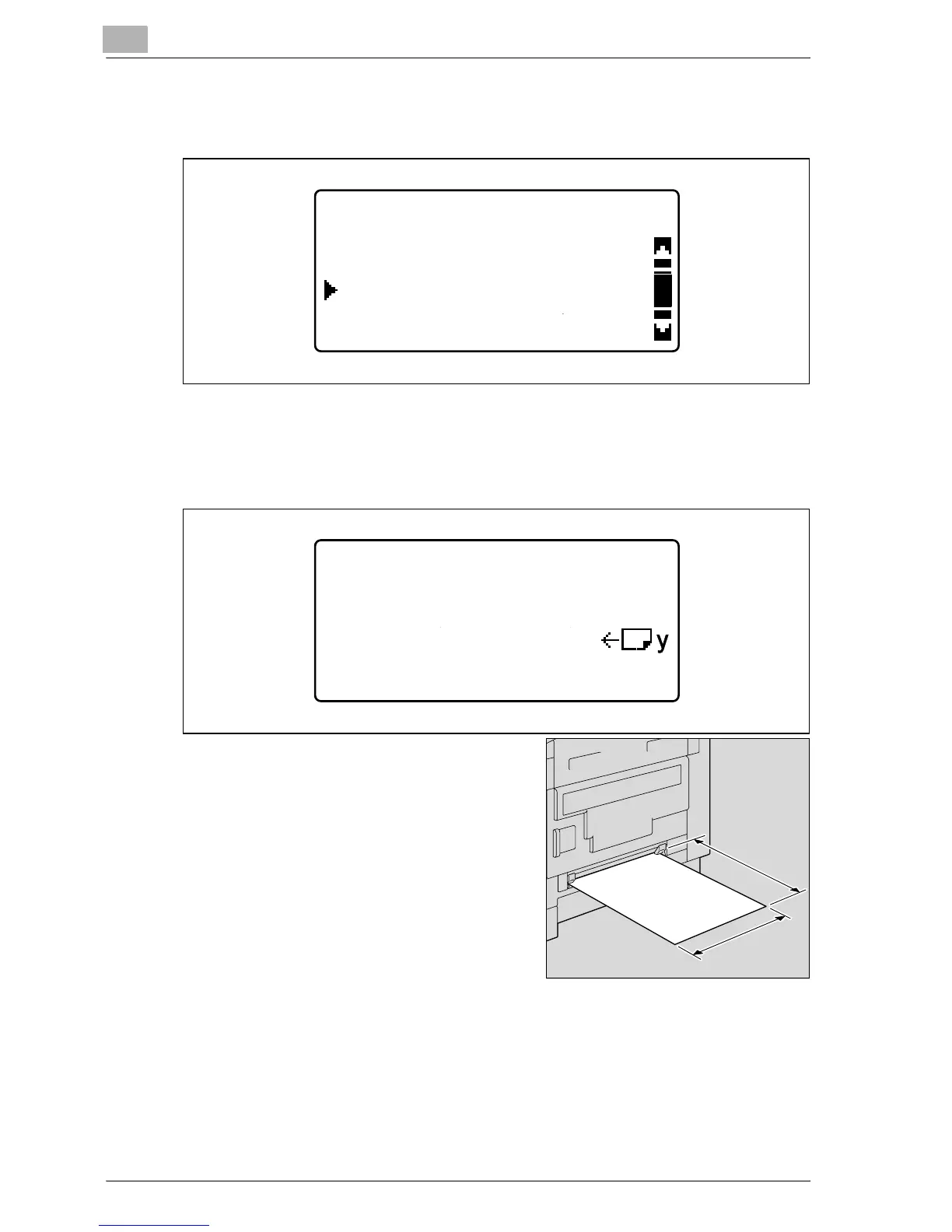 4 Press the [+] or [,] key until "SIZE INPUT" is selected, and then press