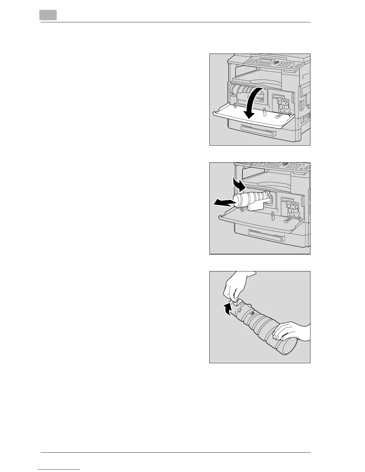 2 Open the toner bottle holder toward