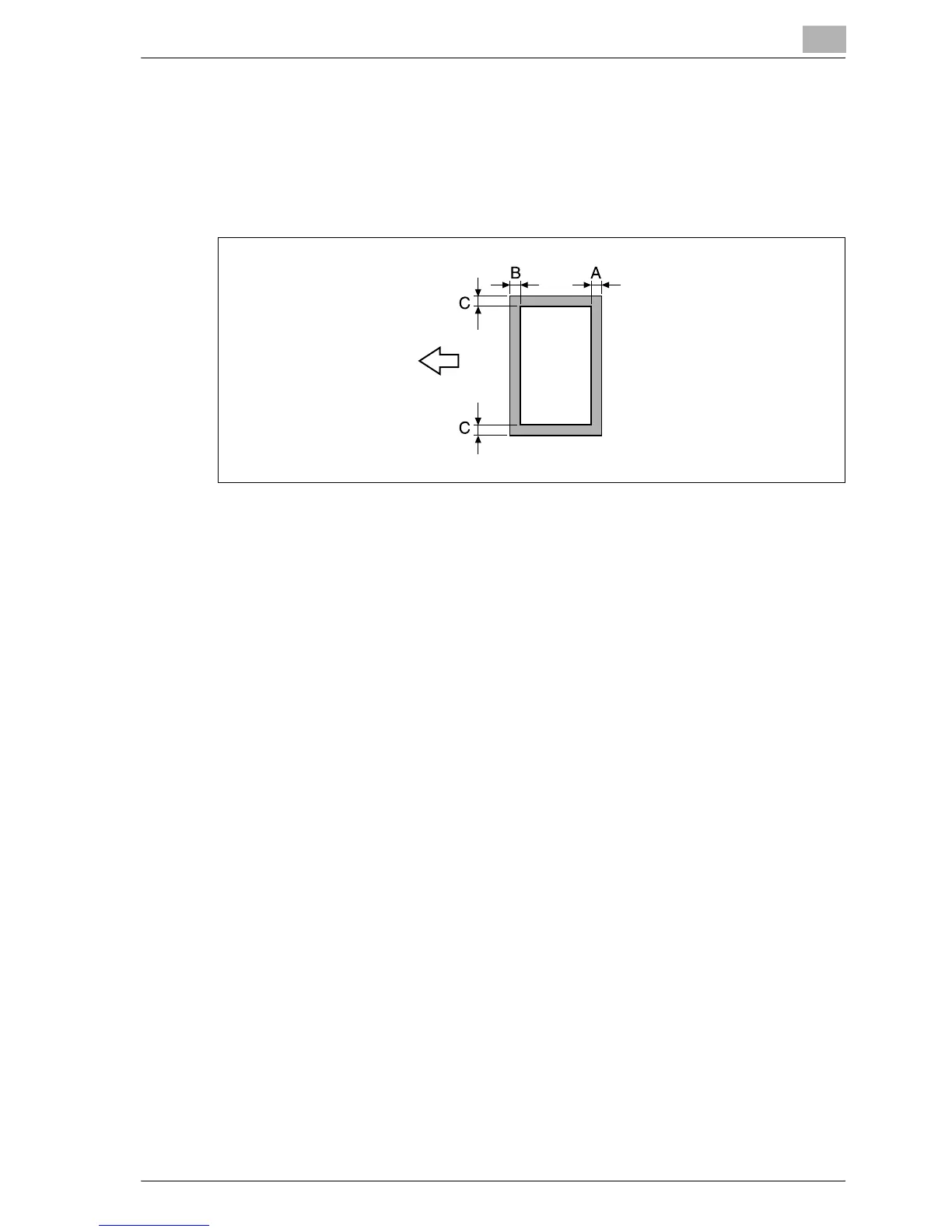 - A margin 4 mm (at full size) from the leading edge of the paper (B)