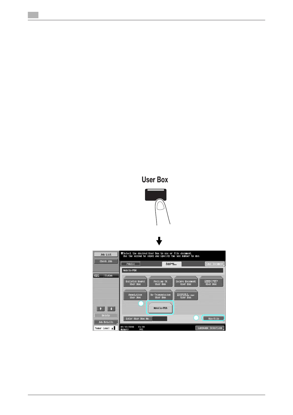 A document stored in a cellular phone or PDA can be saved in a User Box. The save function is available only