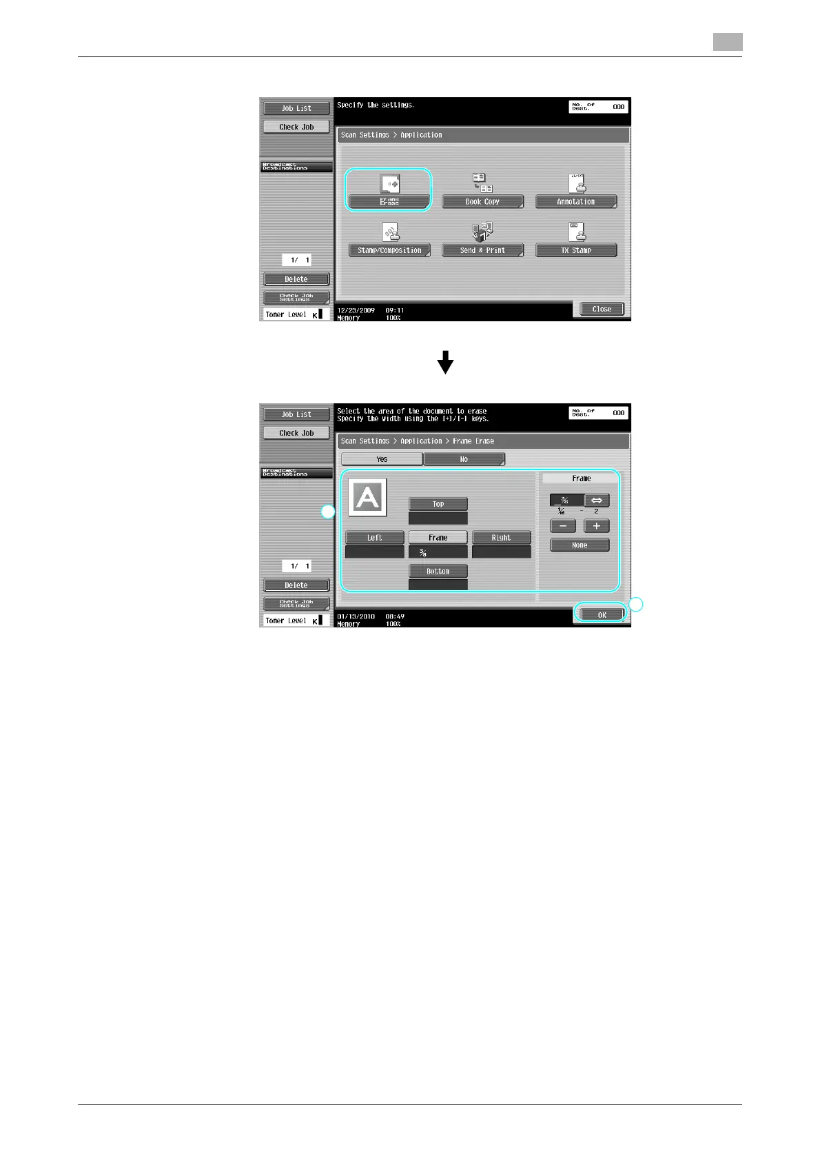 - The width of the frame to be erased can be set between 1/16 inch and 2 inches (0.1 and 50.0 mm).