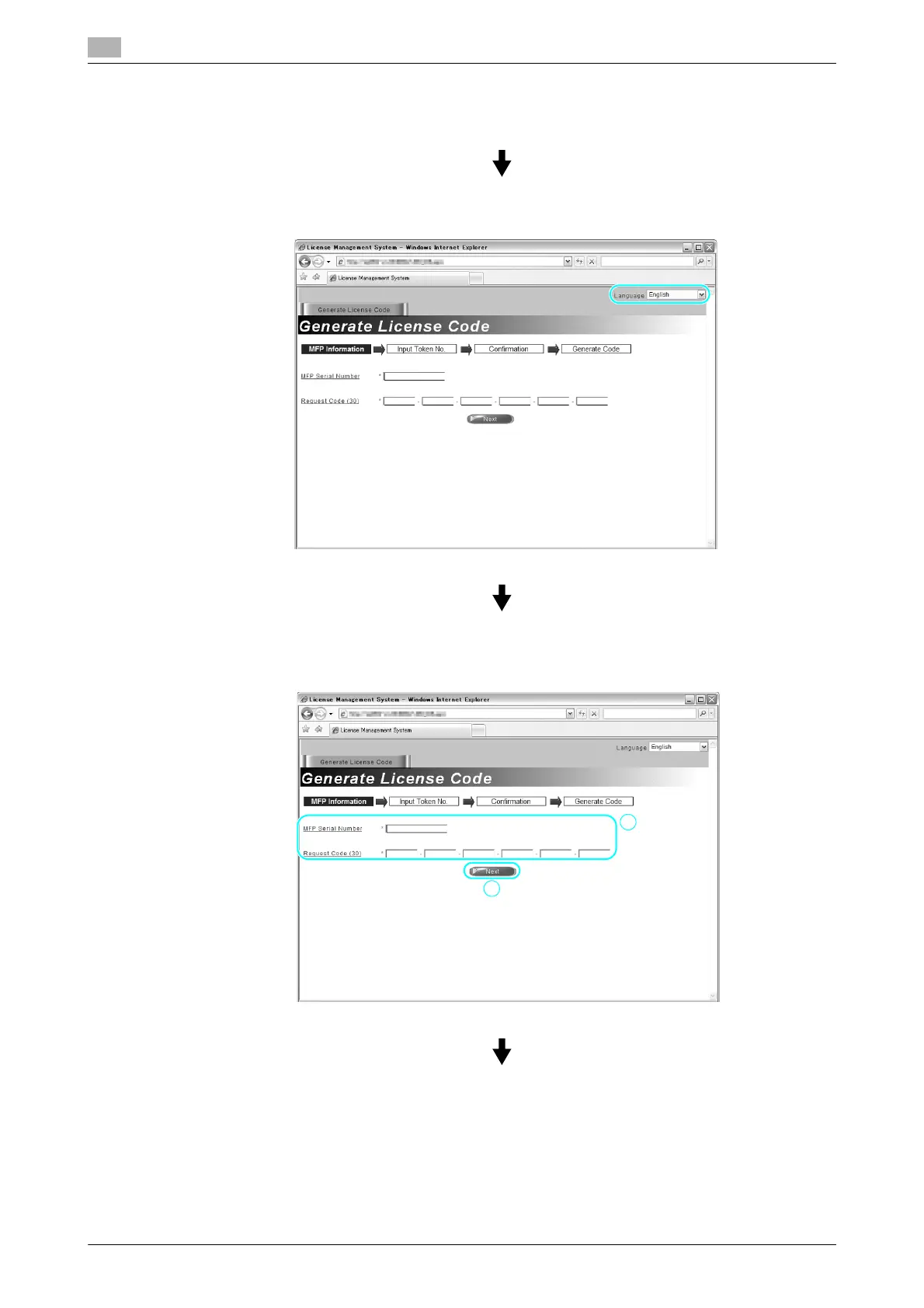 % Type in the serial number and request code displayed by issuing a request code, and then click the