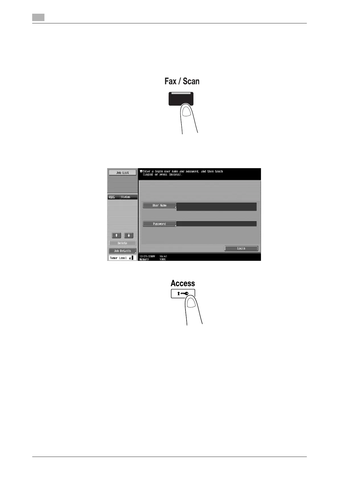 information, and then press [Login] or press the [Access] key. For details, refer to chapter 10 or