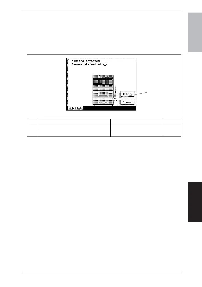 • When misfeed occurs, message, misfeed location “Blinking” and paper location “Light-