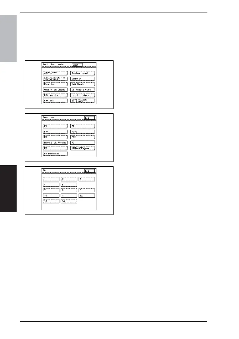 ☞ For details of how to display the Tech. Rep. Mode screen, see the Adjustment/Setting
