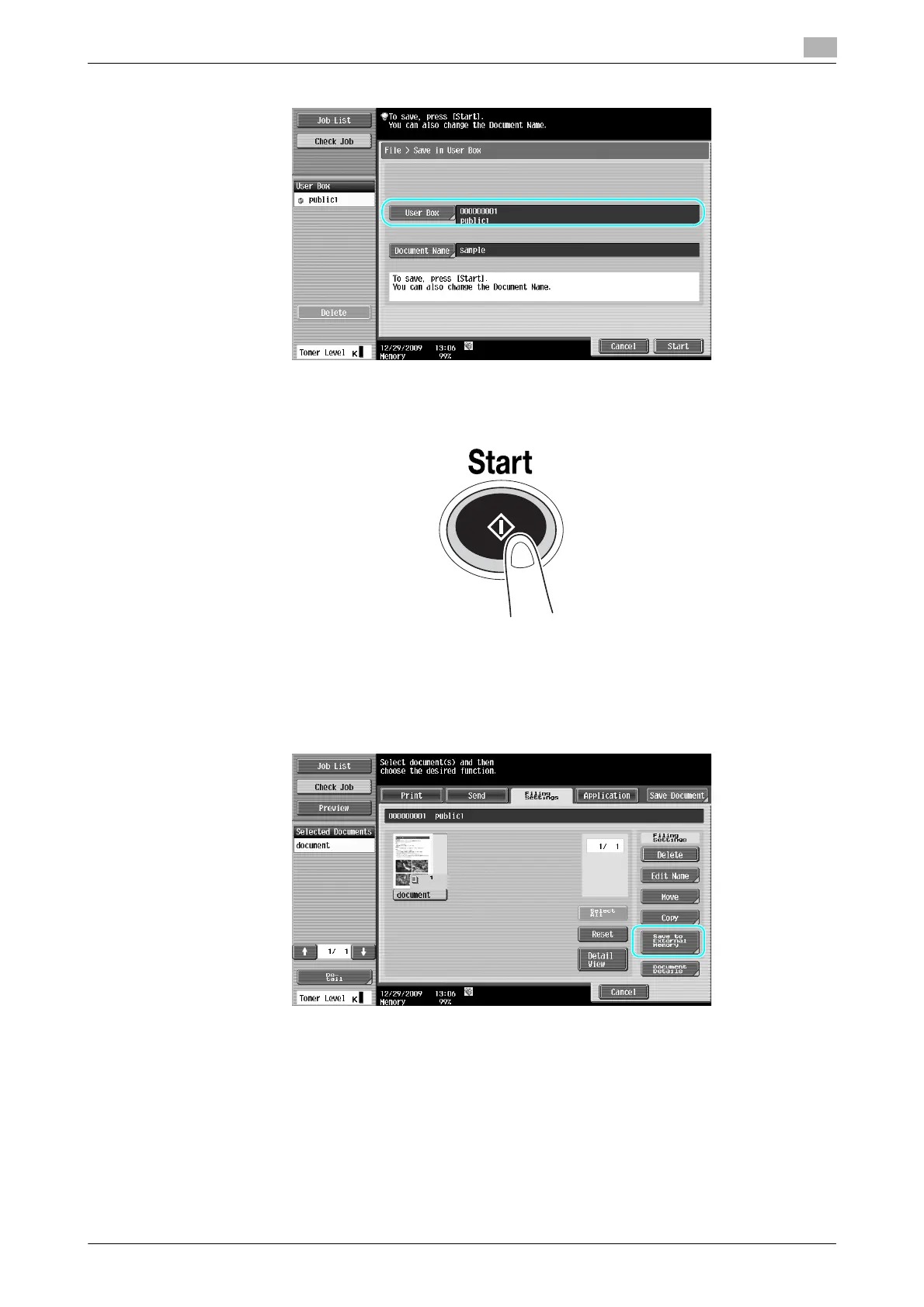 If necessary, a document in a User Box can be saved in external memory. A hard disk must be installed to