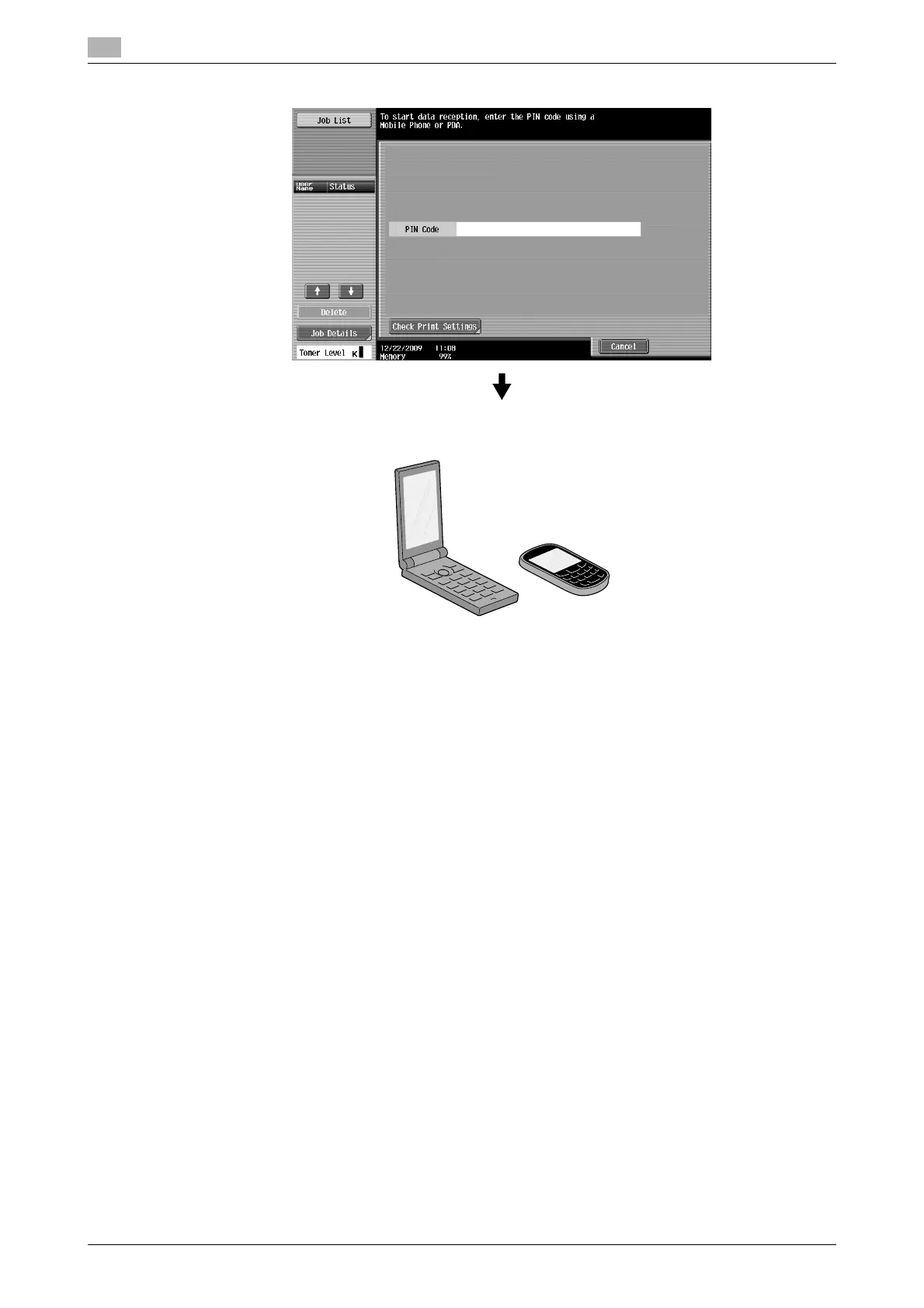 To receive a file from a cellular phone or PDA, select this machine, specify the file, and enter the PIN code in