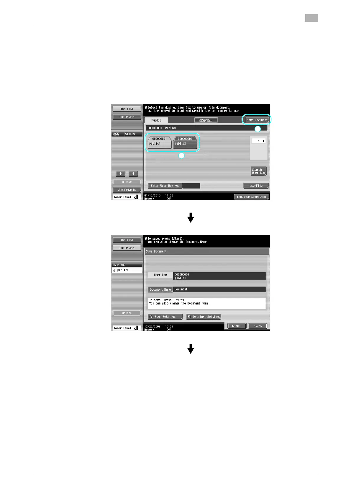 - If a hard disk is not installed, the scanned document can only be saved in external memory.