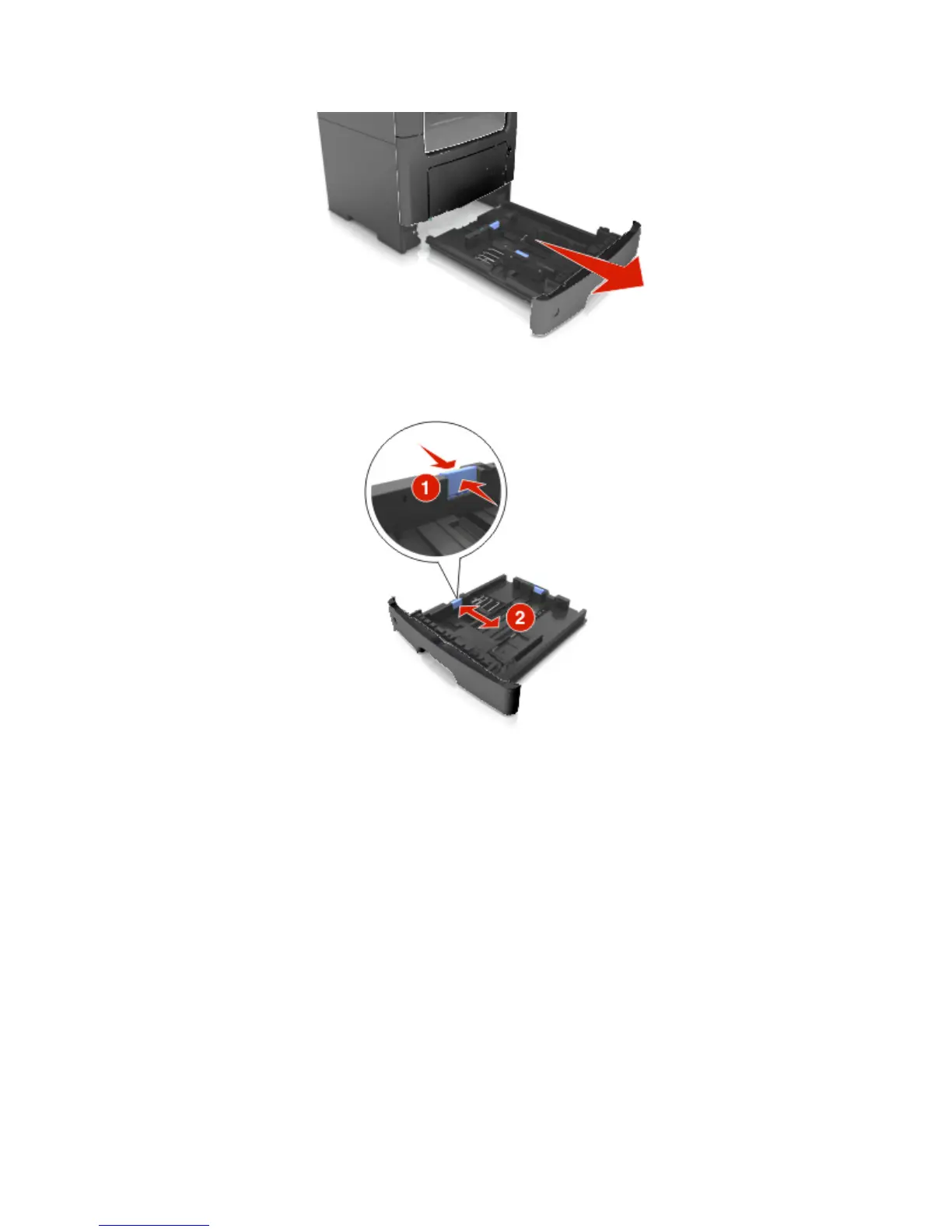 2. Squeeze and then slide the width guide tab to the correct position for the size of the paper you are