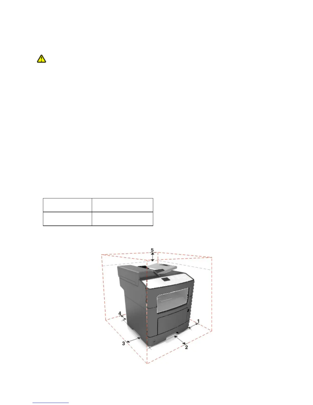 Allow the following recommended amount of space around the printer for proper ventilation: