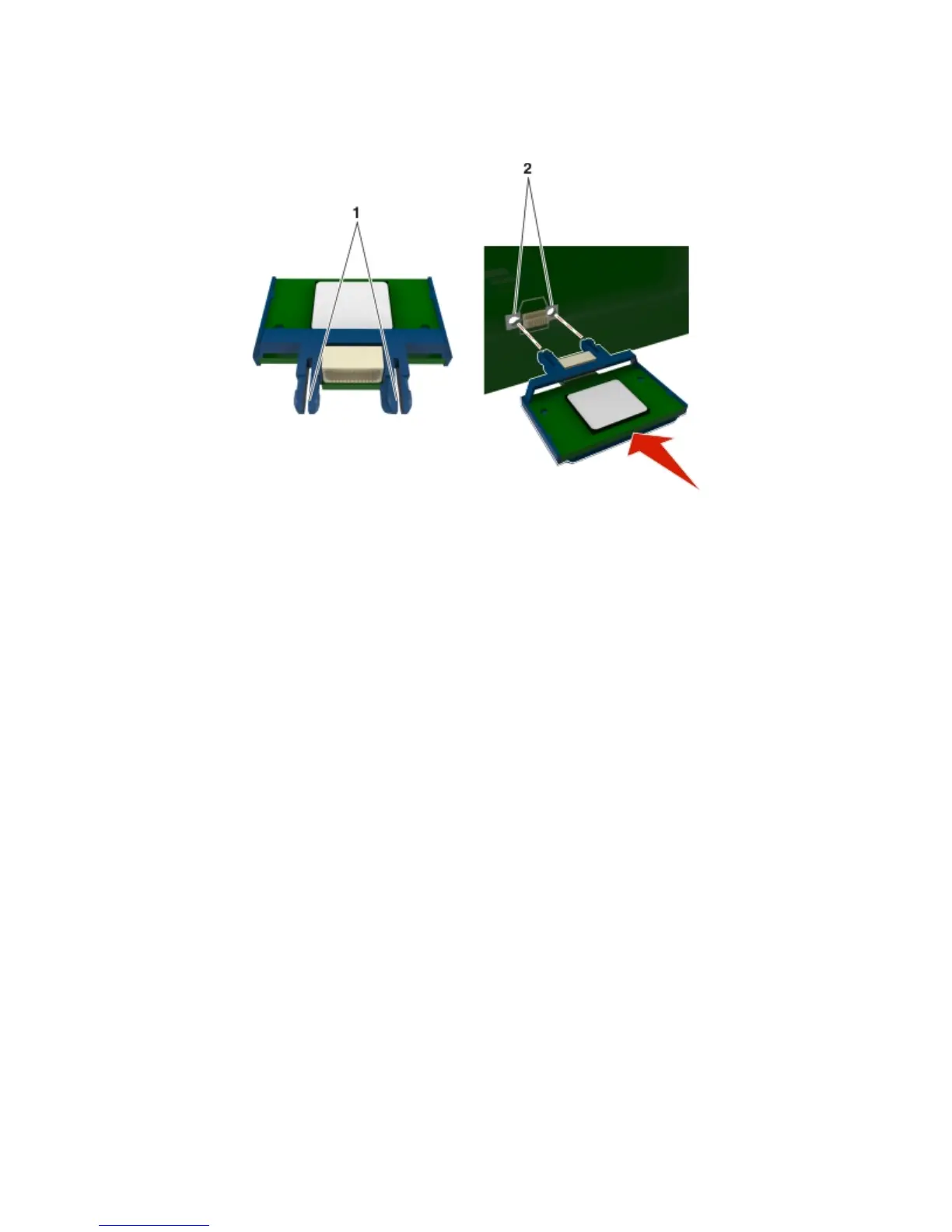 3. Holding the card by its sides, align the plastic pins (1) on the card with the holes (2) on the controller