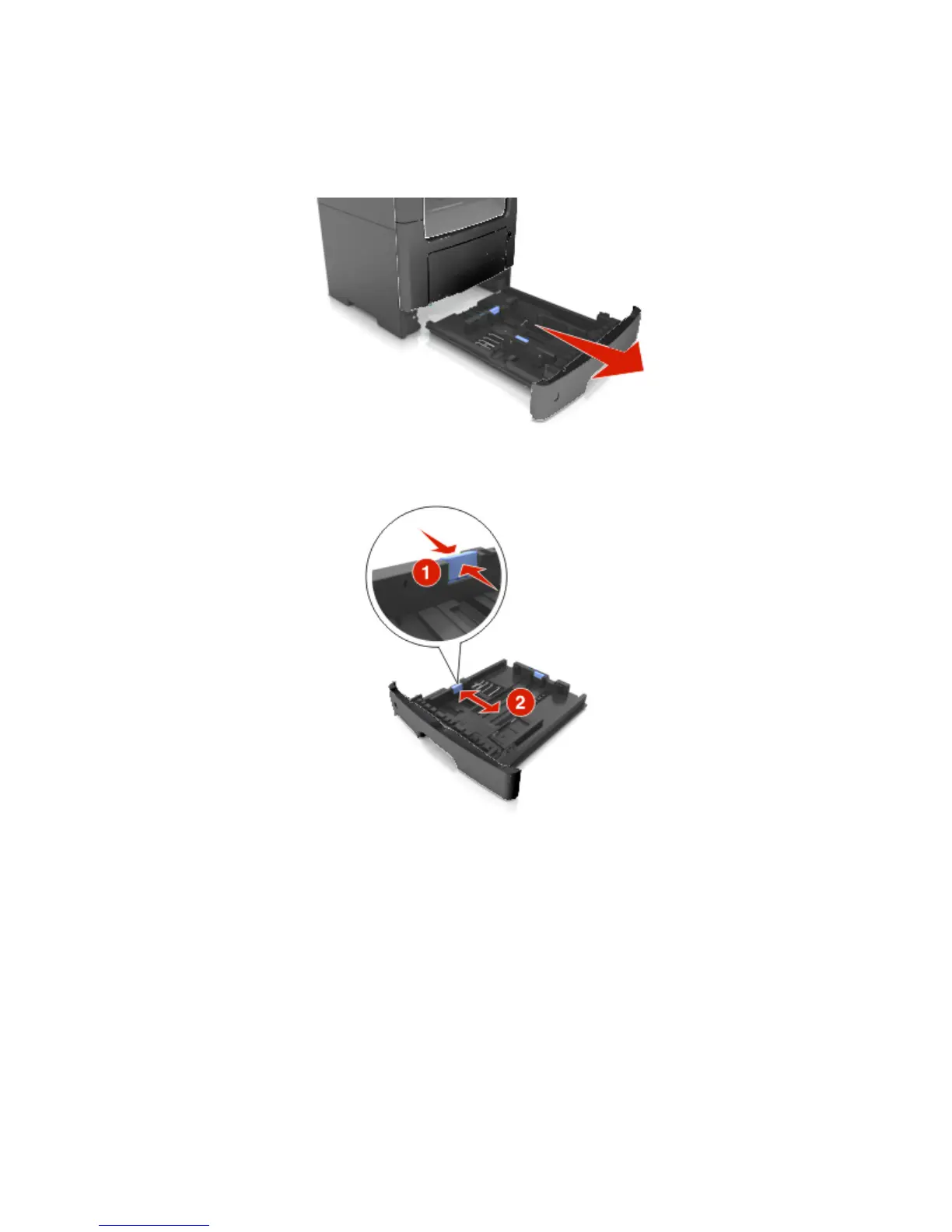 Note: Do not remove trays while a job prints or while Busy appears on the printer display. Doing so