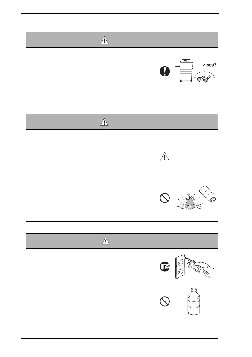 • Make sure that all screws, components, wiring, connec-