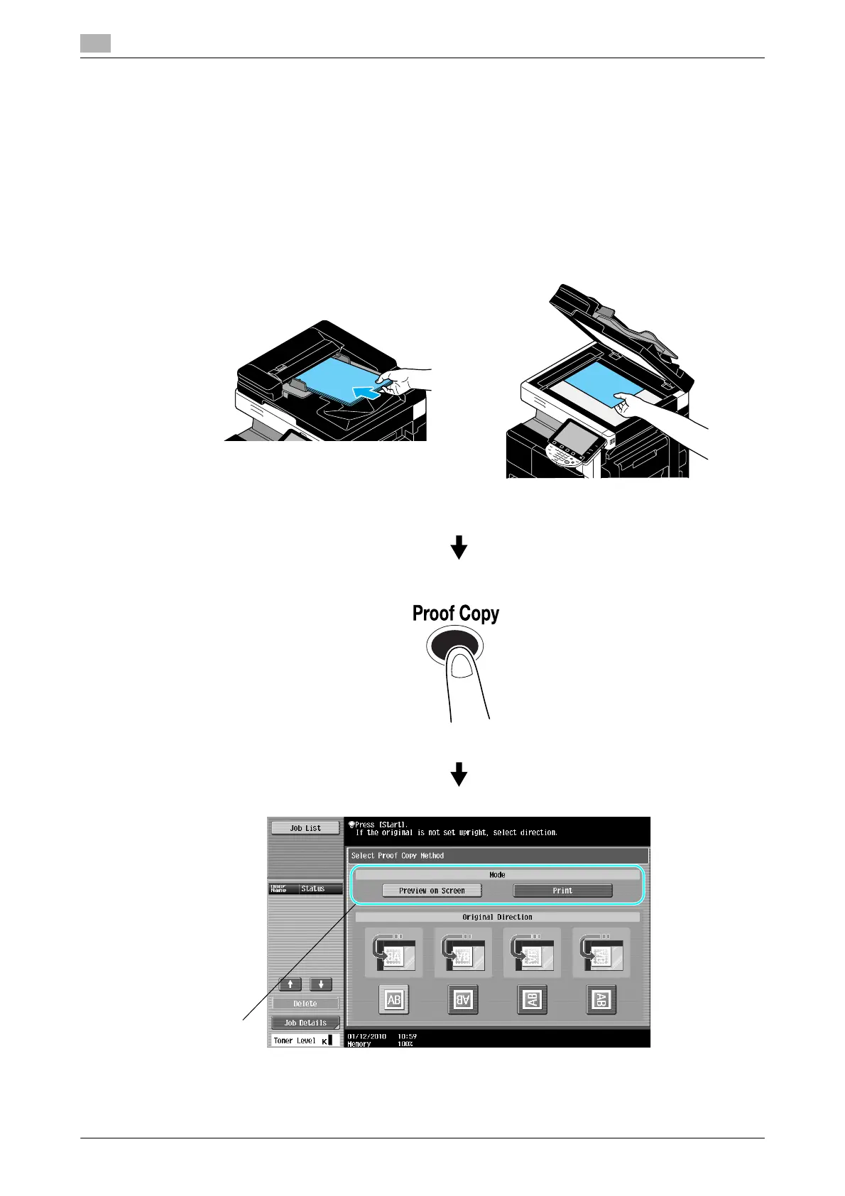 - The "Select Proof Copy Method" screen is displayed only when a hard disk is installed.