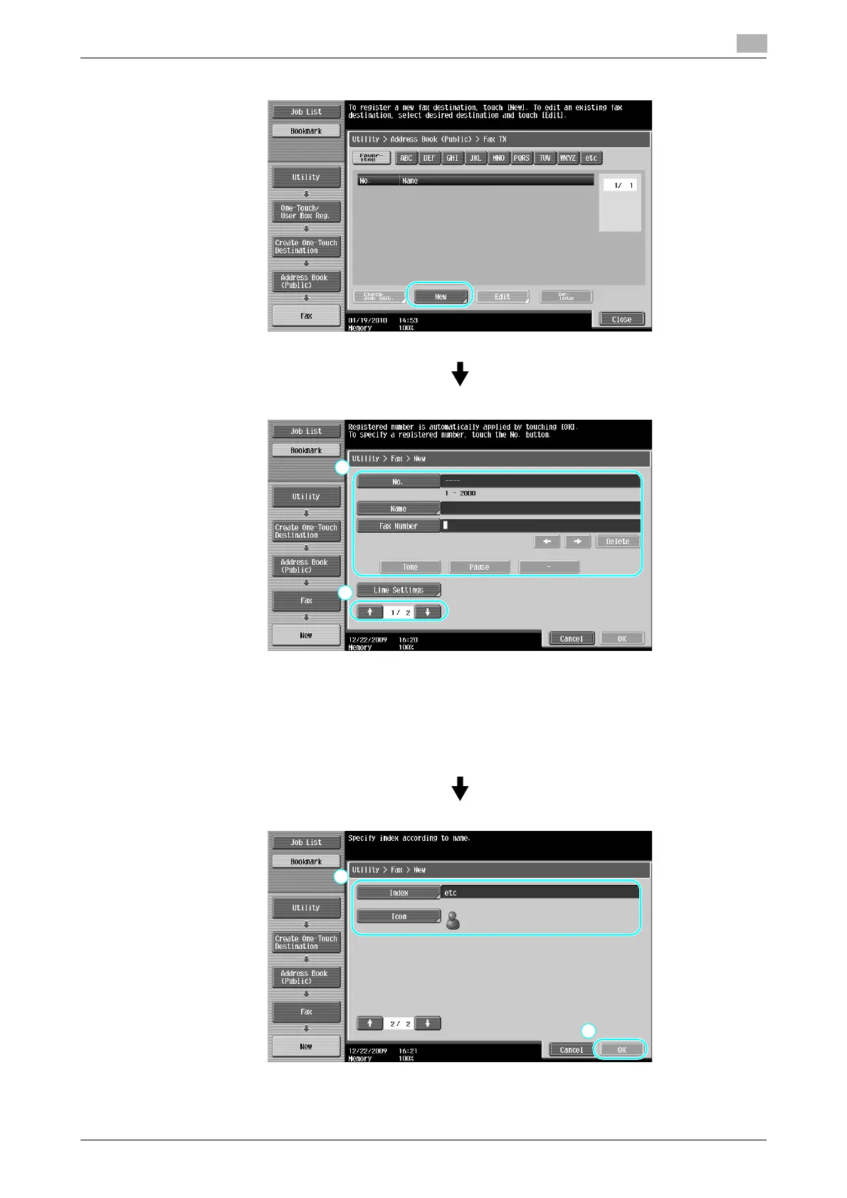 • Index: Select the index characters used for organizing the fax numbers. By selecting index characters