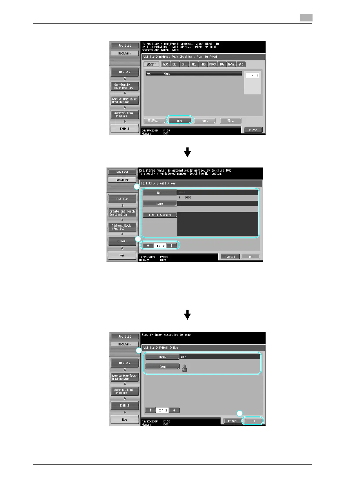 E-mail Address: Use the keyboard that appears in the touch panel to type in the e-mail address.