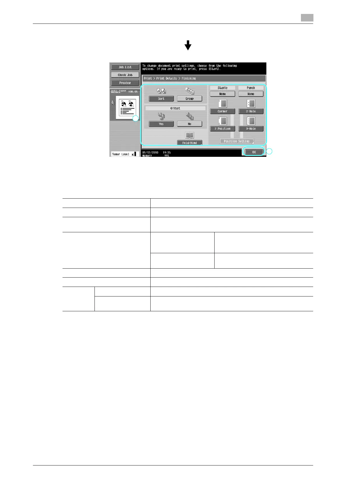 The Finishing settings that are available differ depending on the installed options. For details, refer to