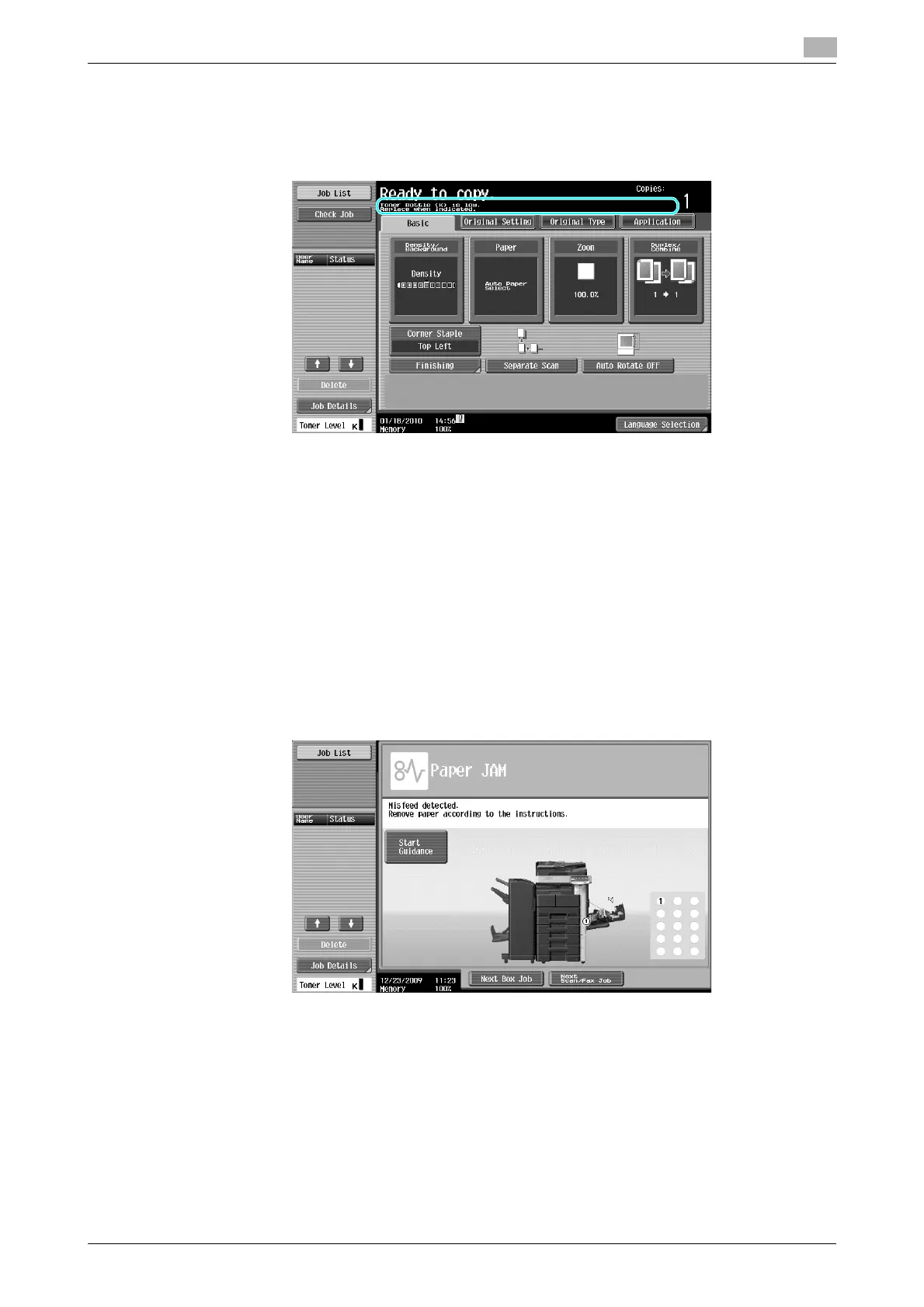 - Check that no torn paper remains in the part indicated by the number in the touch panel screen. If the