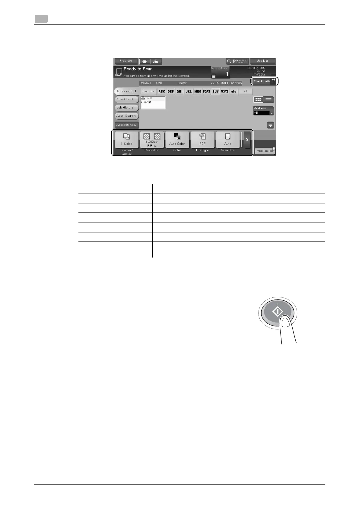 % You can also check the setting using the keys displayed on the Touch Panel.