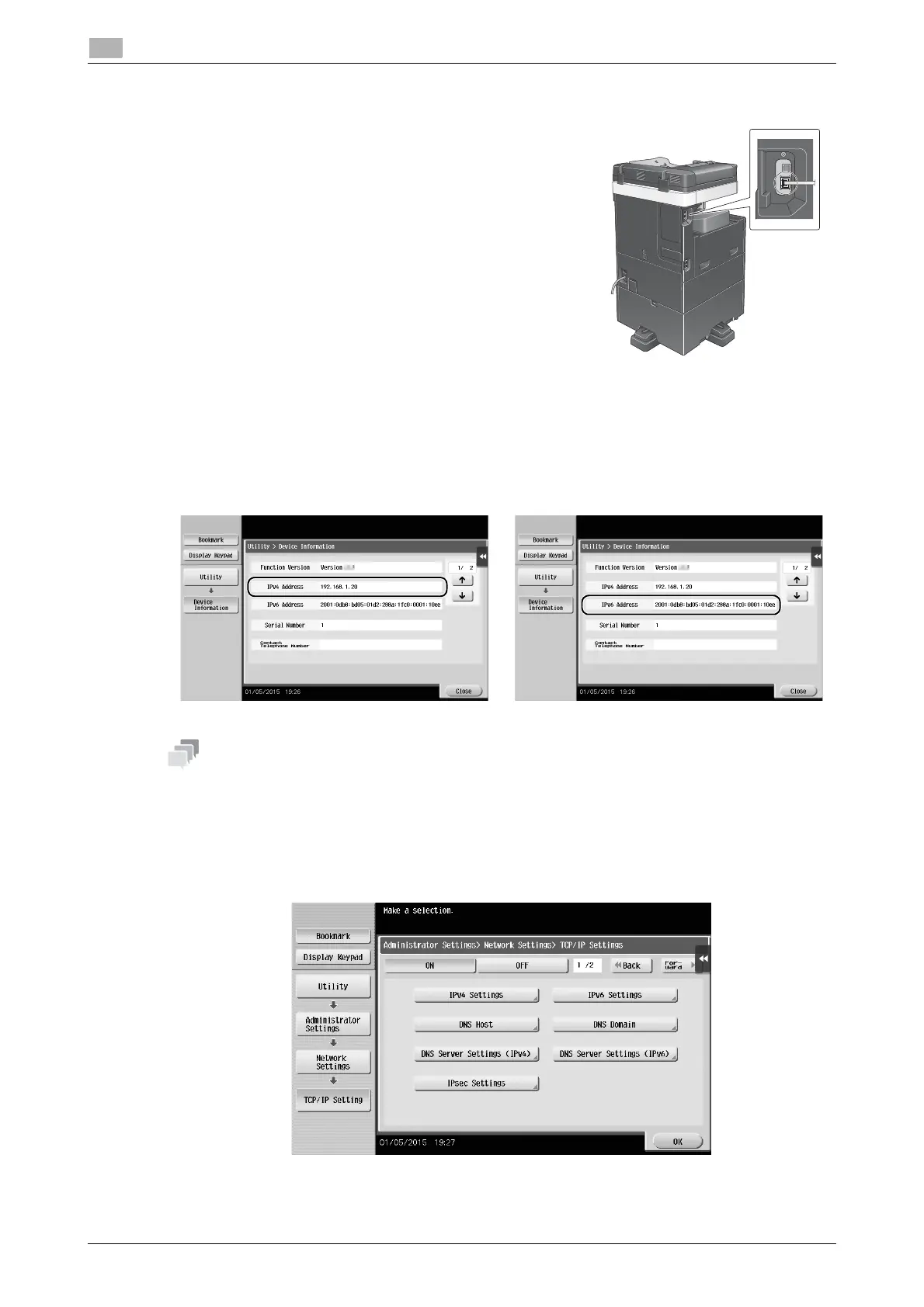 Settings] - [Network Settings] - [TCP/IP Settings]. Configure the required settings to suit your environ-