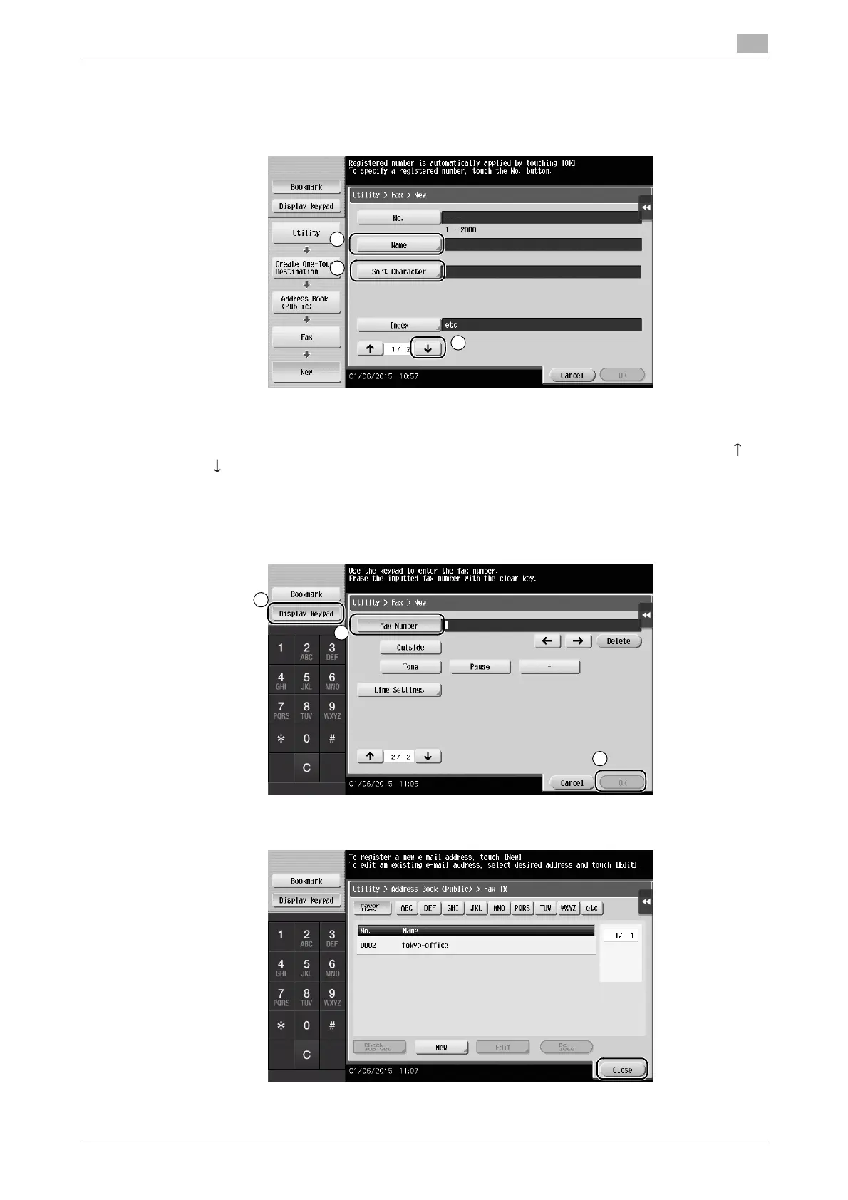 % Entry items and the number of setting screens vary depending on the destination type. Use [ ] or
