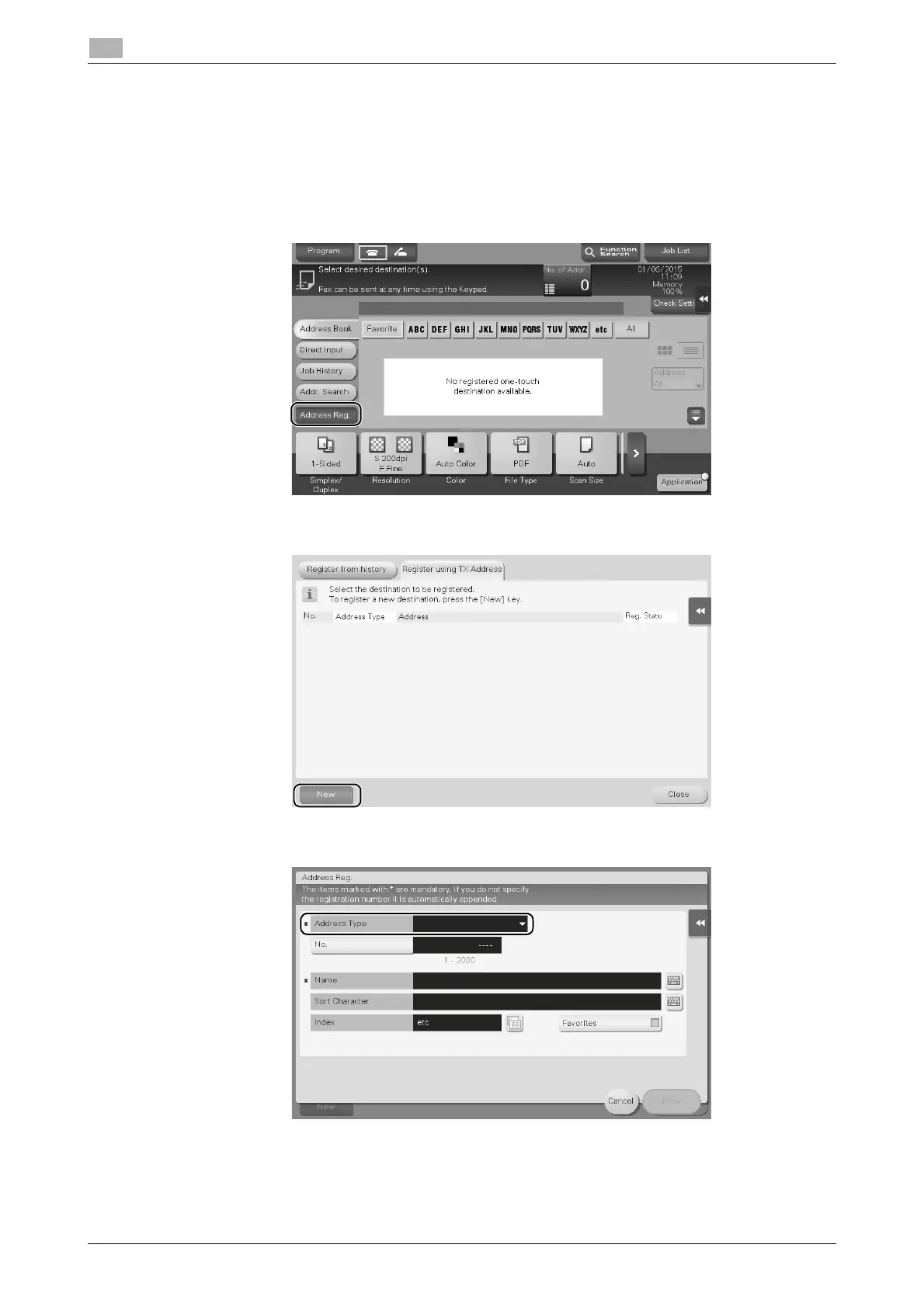Develop ineo 367 - Using the Control Panel to Register an Address Book - Registration in Scan;Fax Mode