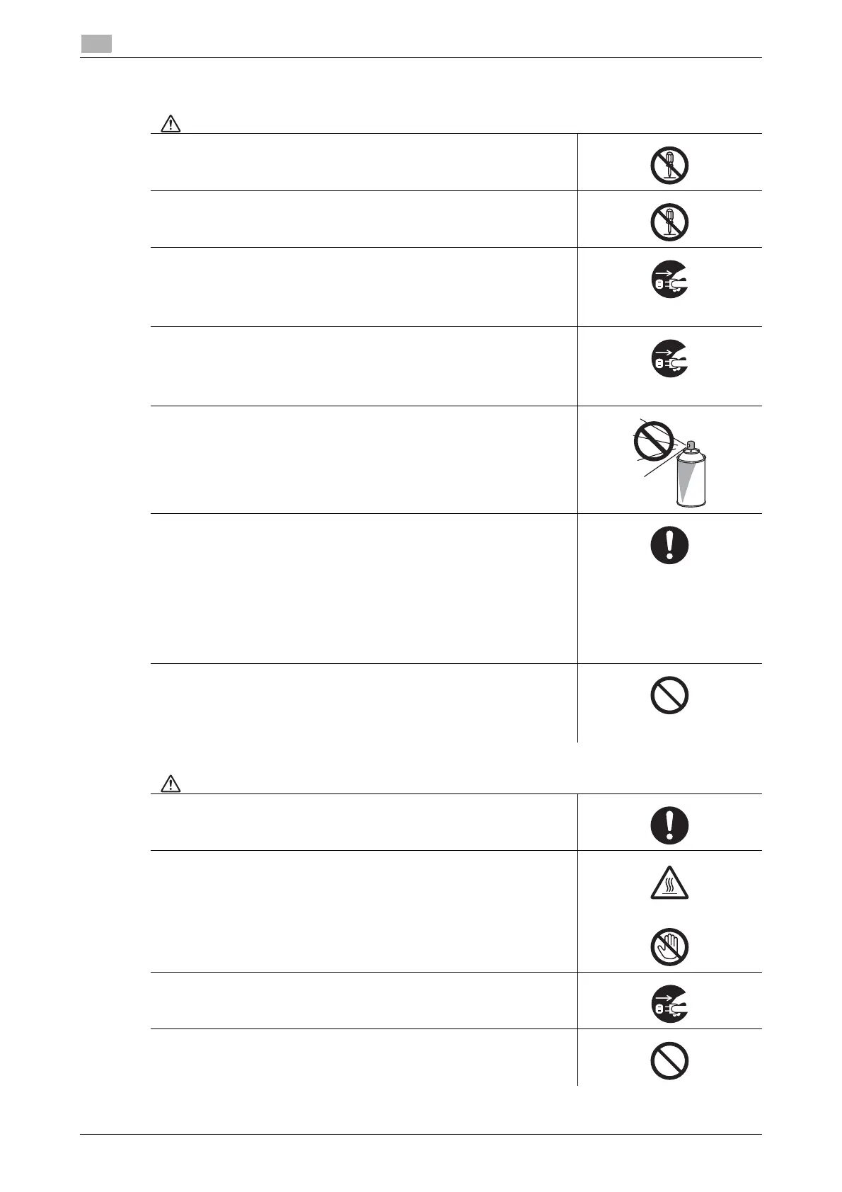Do not use flammable sprays, liquids, or gases inside or near this ma-