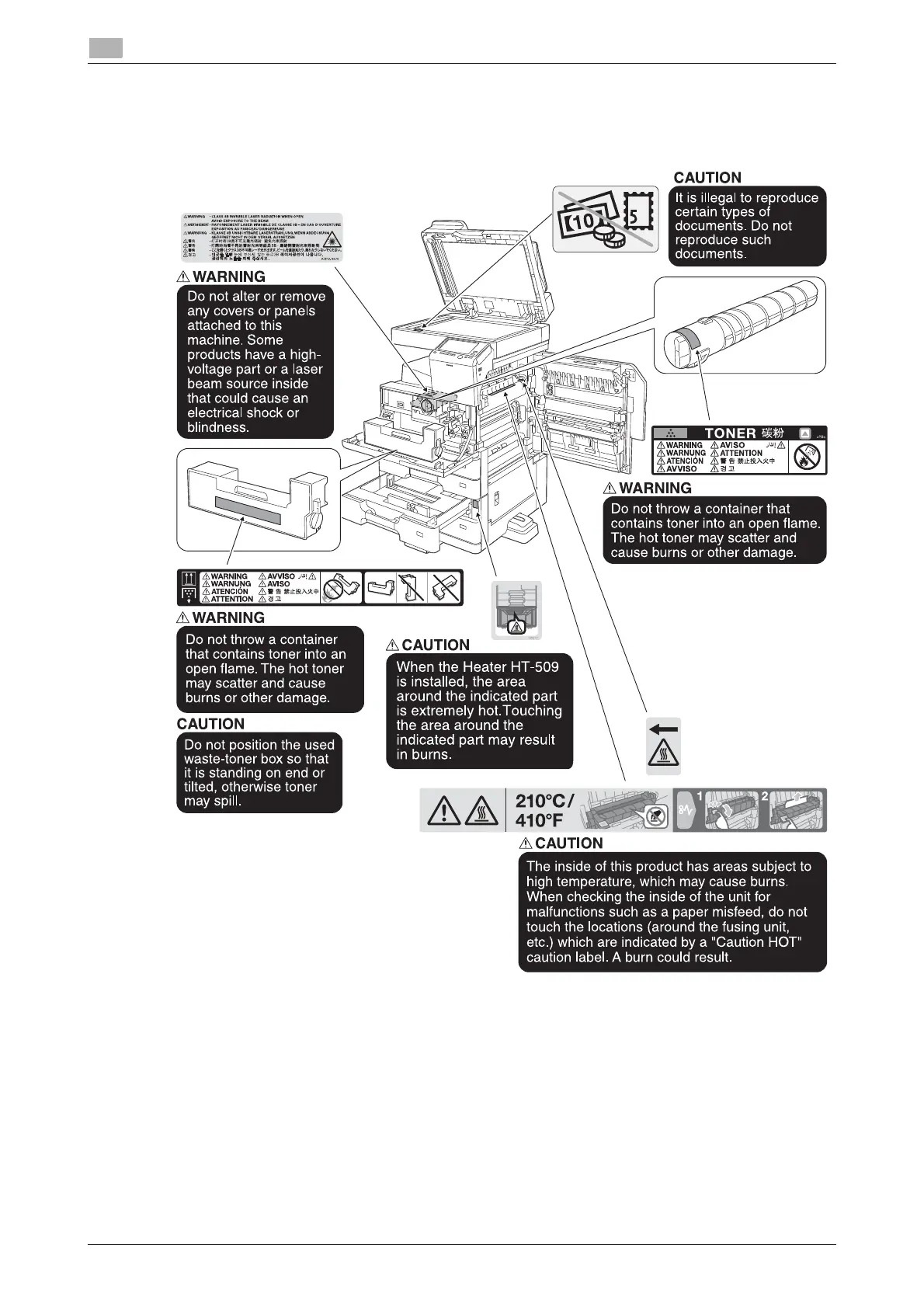 Do not remove caution labels or notations. If any caution label or caution notation is soiled, please clean to