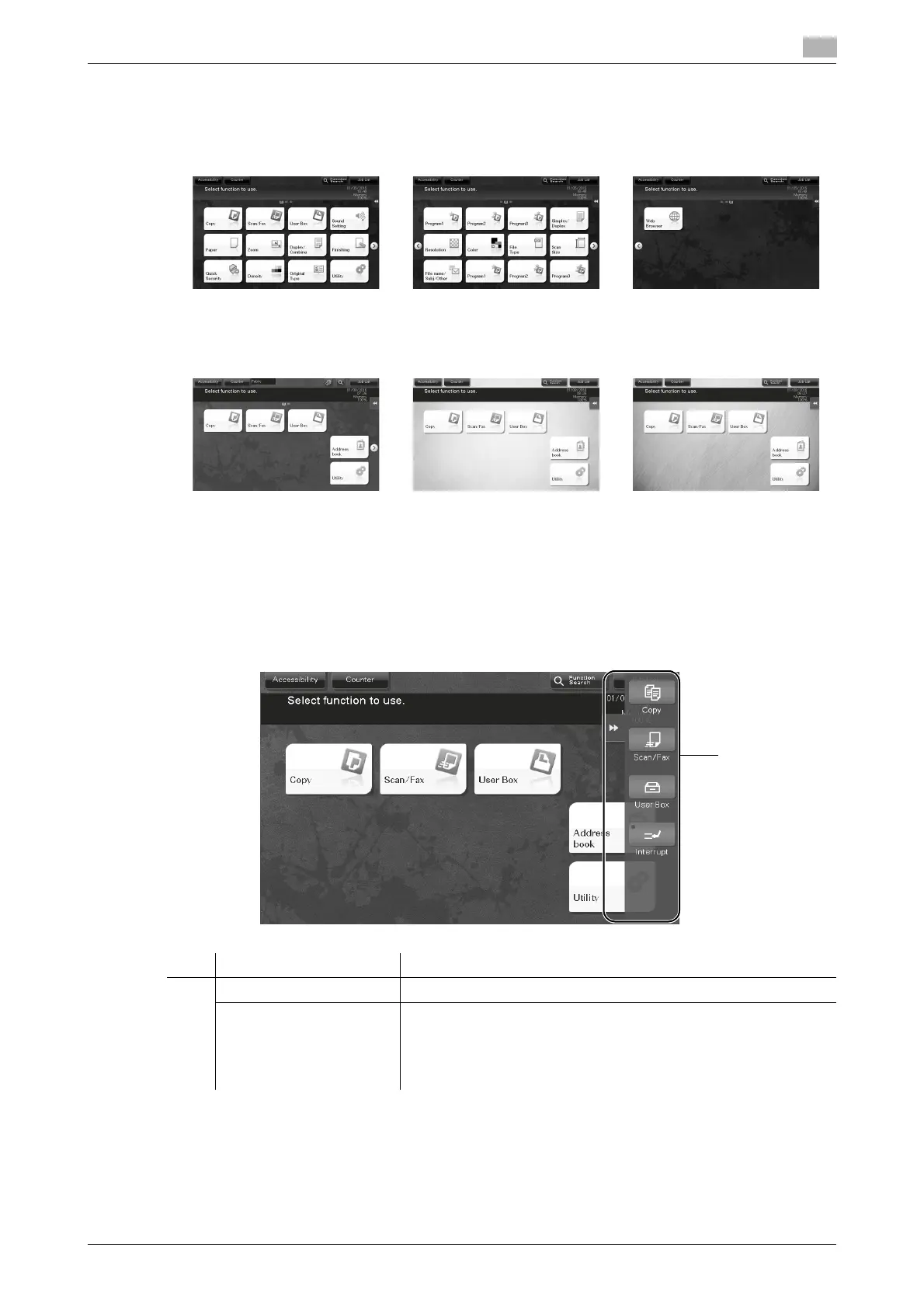 By default, the main menu shows [Copy], [Scan/Fax], [User Box],