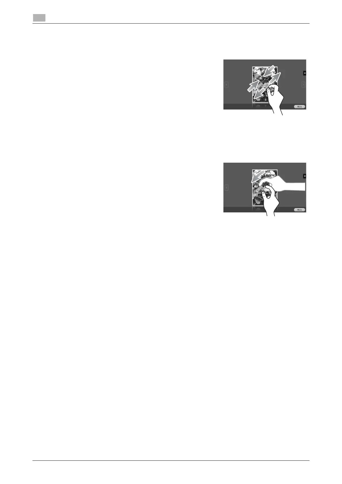 Place two fingers on the screen and then open or close them. Used