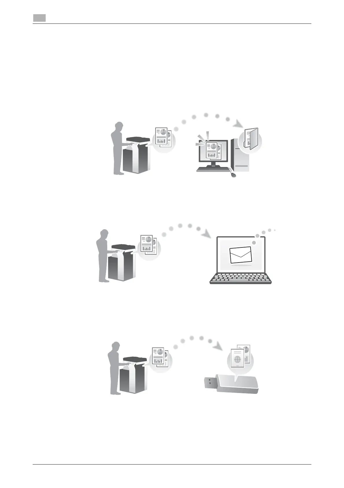 The original data scanned by this machine can be sent and saved using a variety of methods.