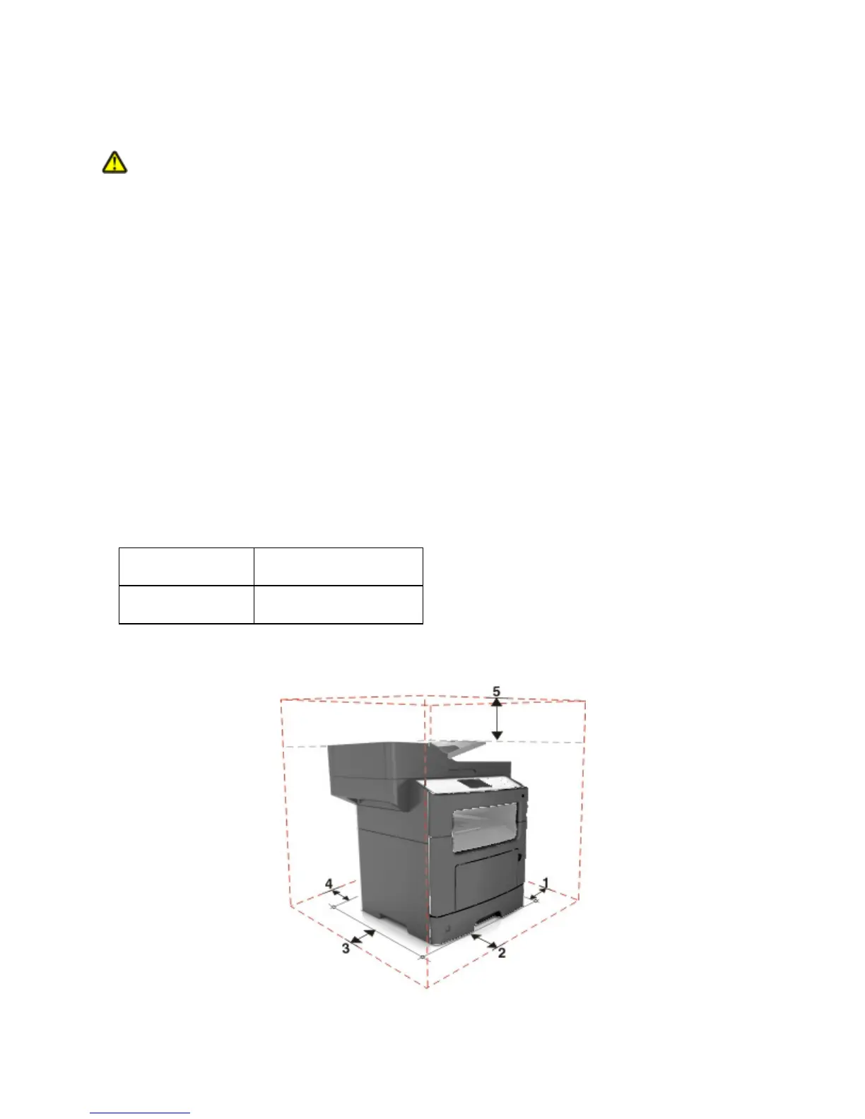 • Allow the following recommended amount of space around the printer for proper ventilation: