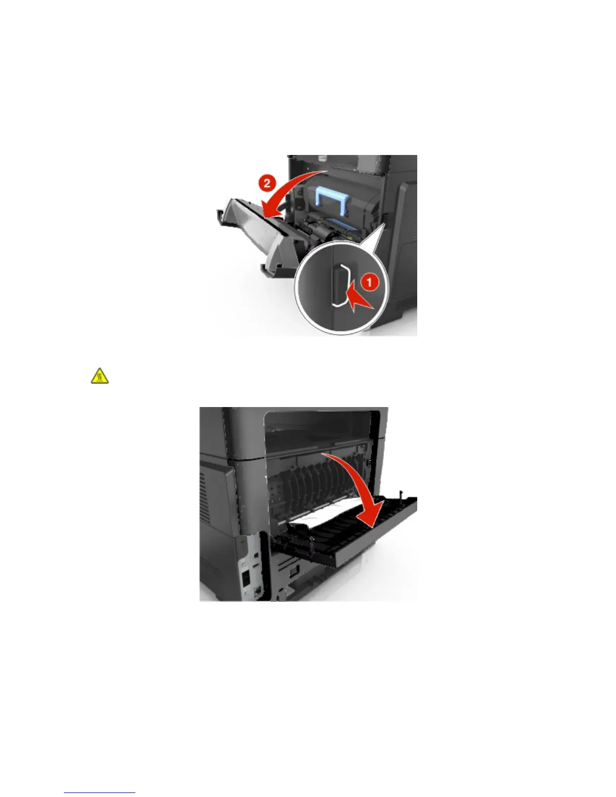 CAUTION—HOT SURFACE: The inside of the printer might be hot. To reduce the risk of injury