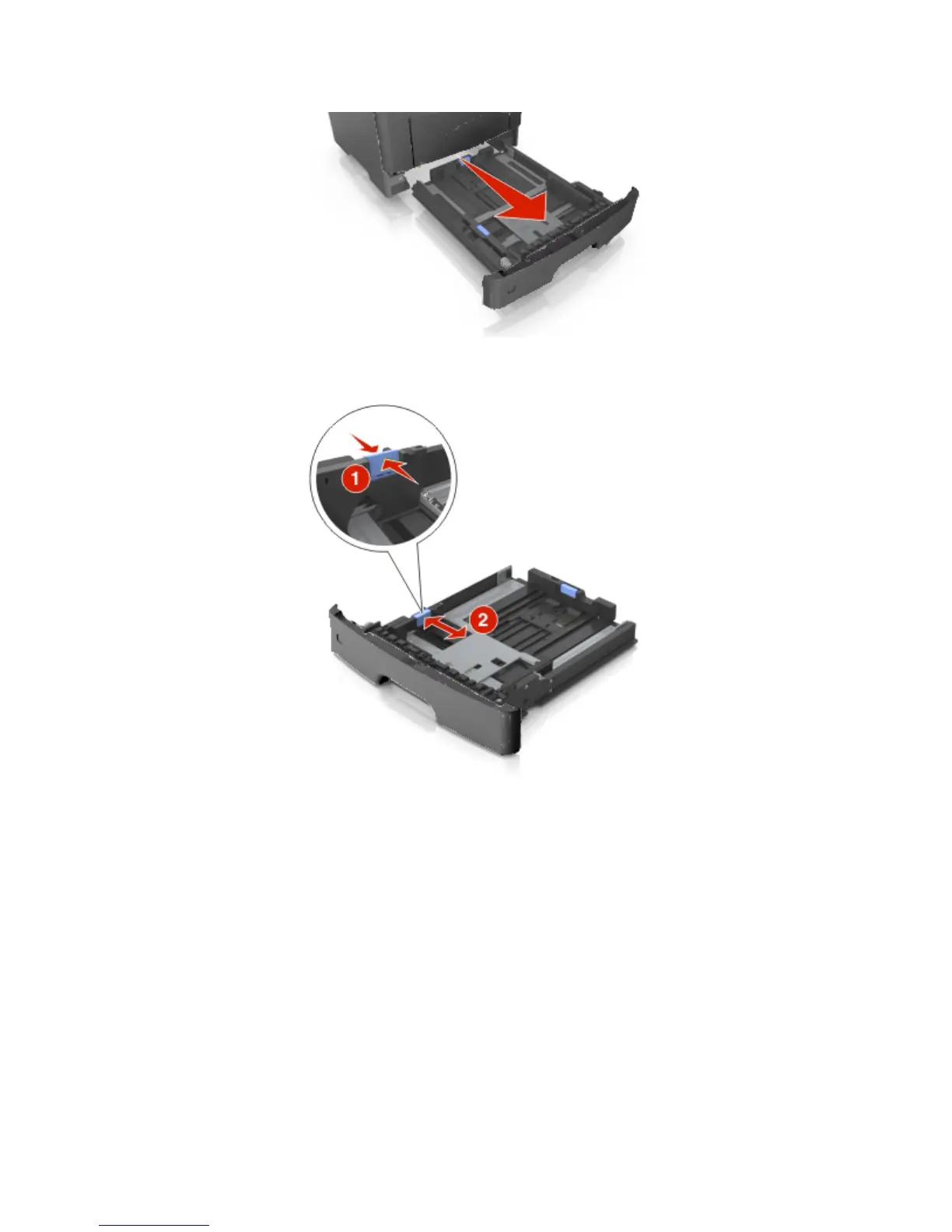 2. Squeeze, and then slide the width guide tab to the correct position for the size of the paper you are