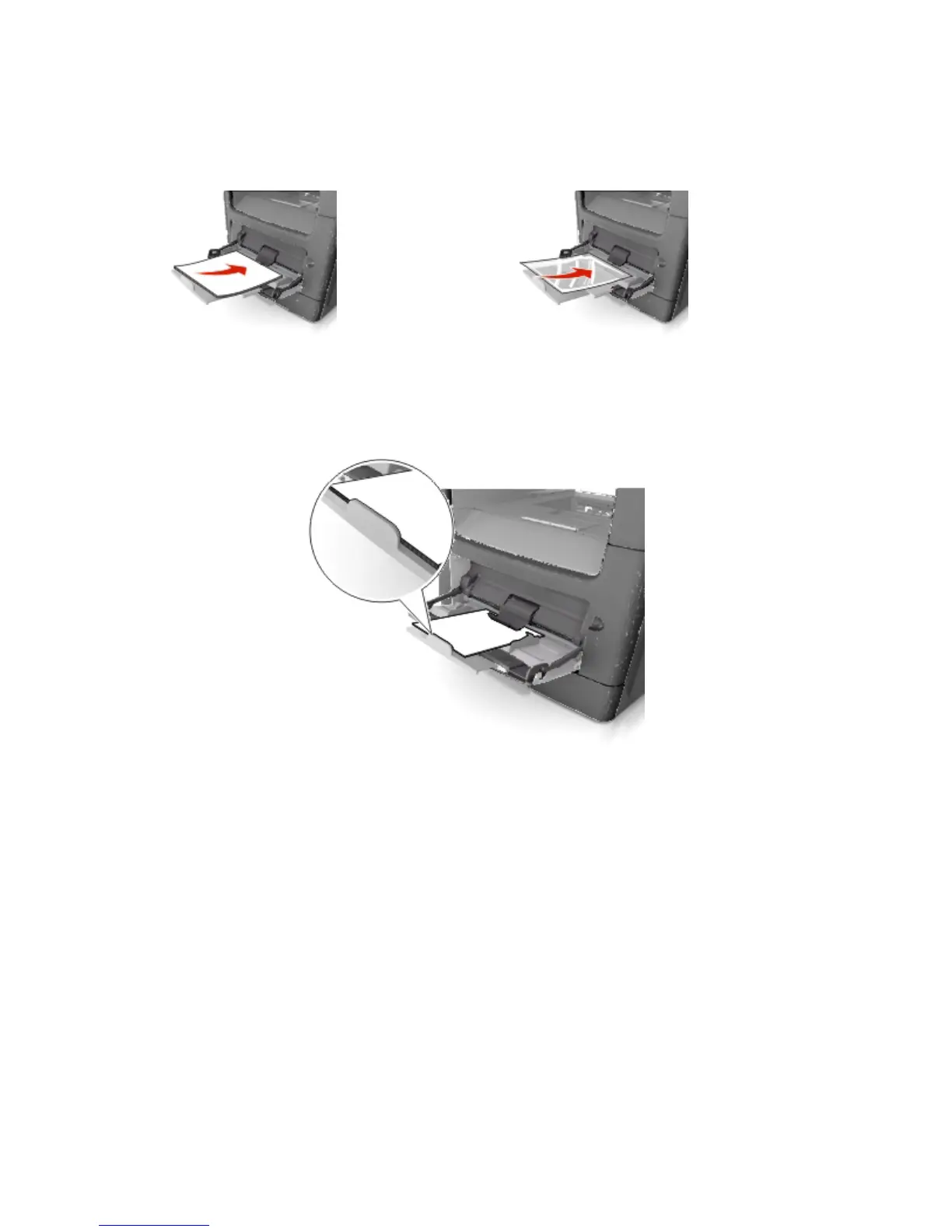 - Load paper, transparencies, and card stock with the recommended printable side faceup and the